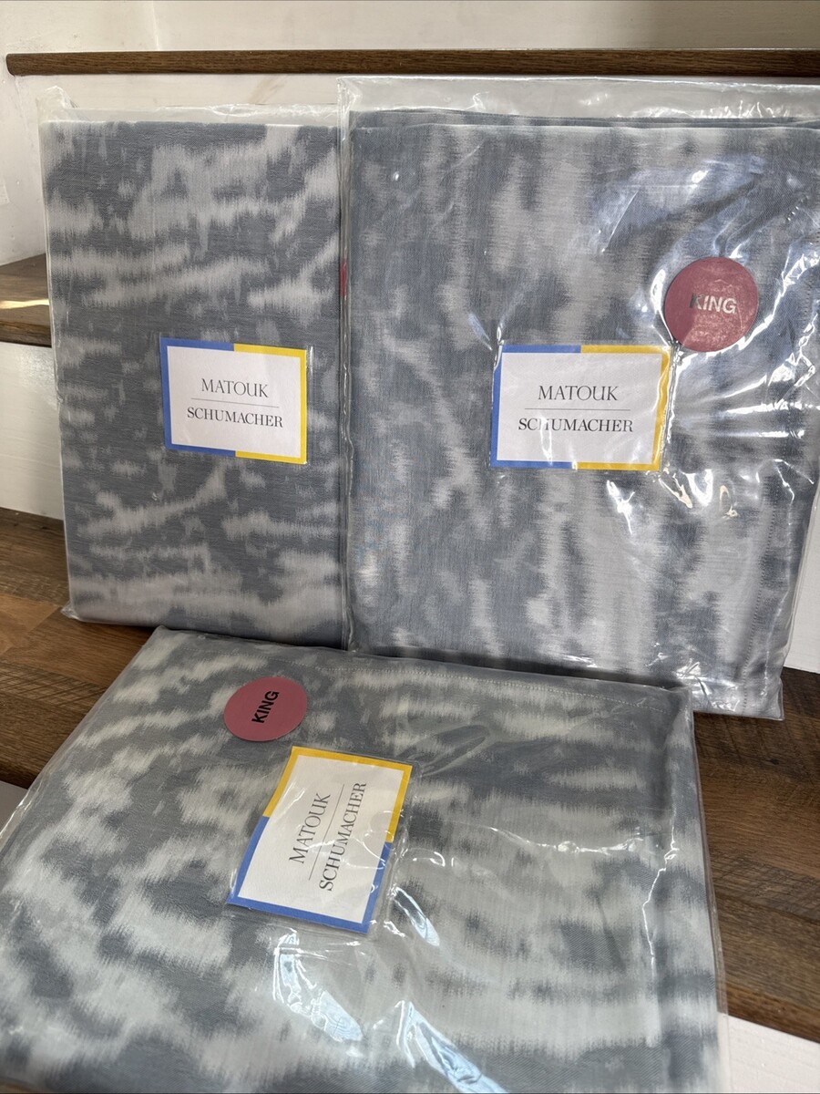 Matouk Schumacher Serengeti Grey Sea King Shams Set 2 ~New~