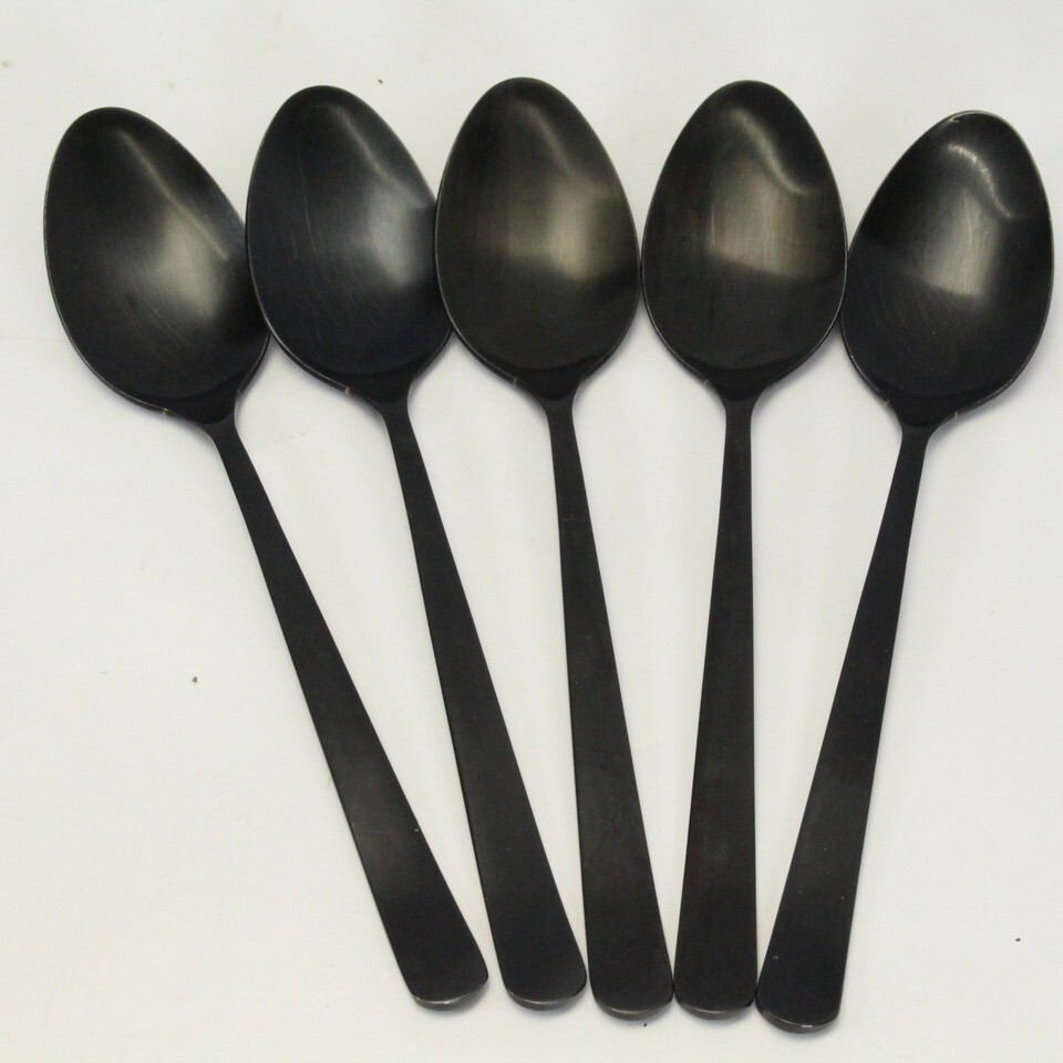 Herdmar Oslo Black Oval Soup Spoons Matte 8 3/8" 18/10 Lot of 5