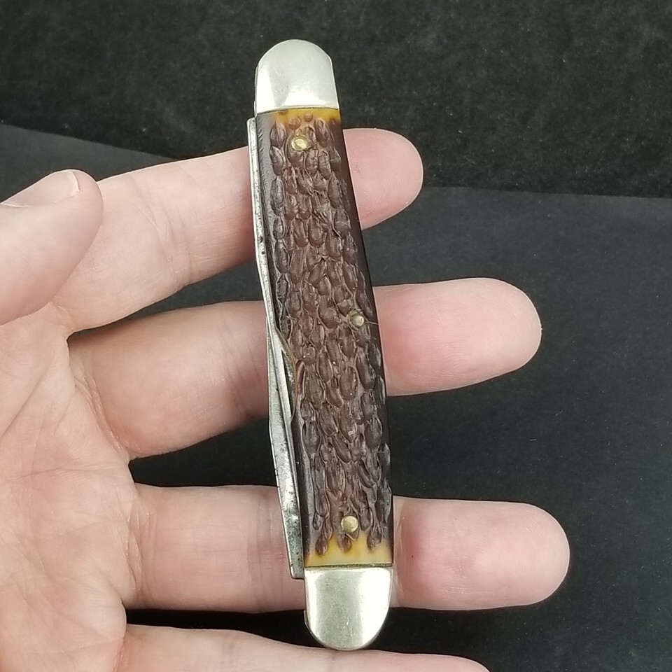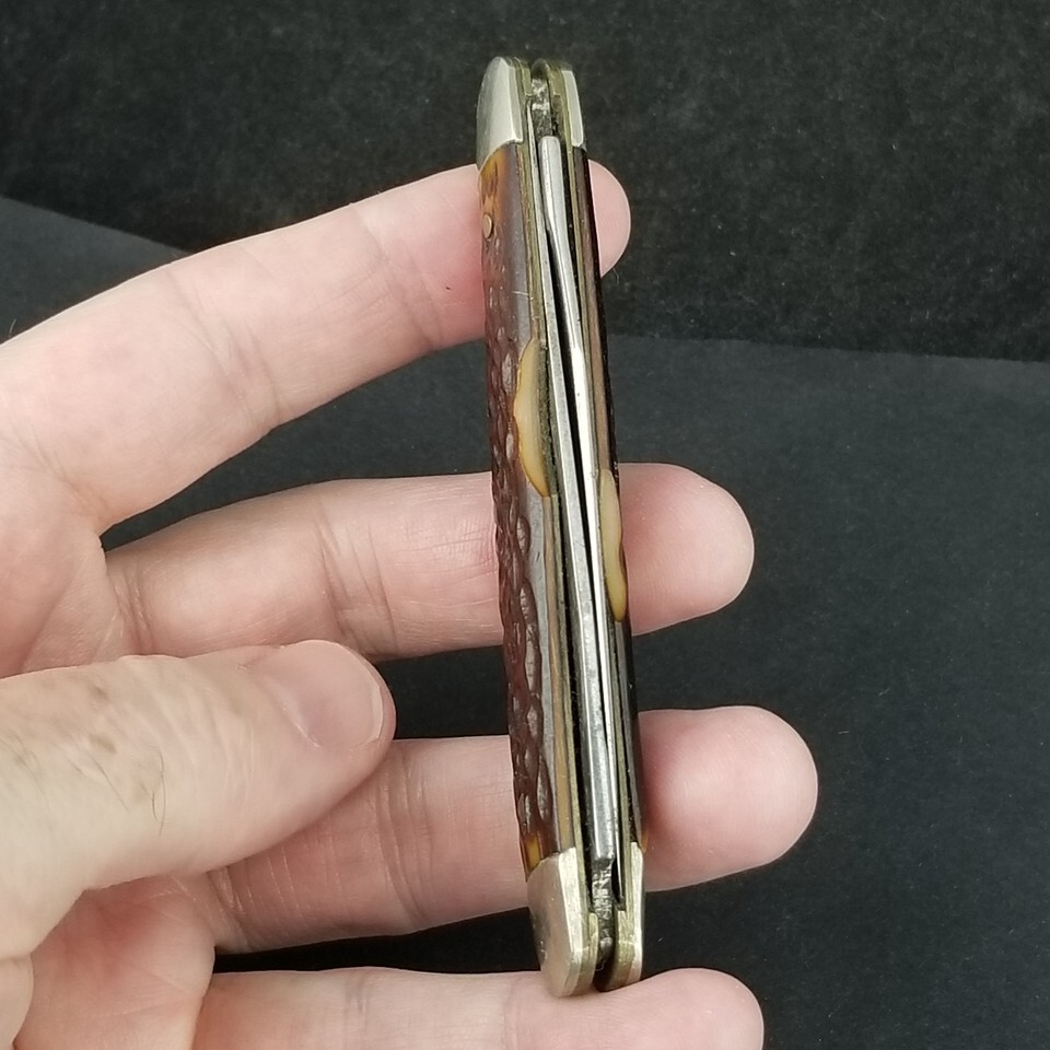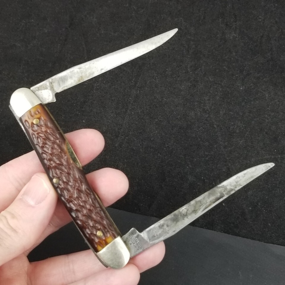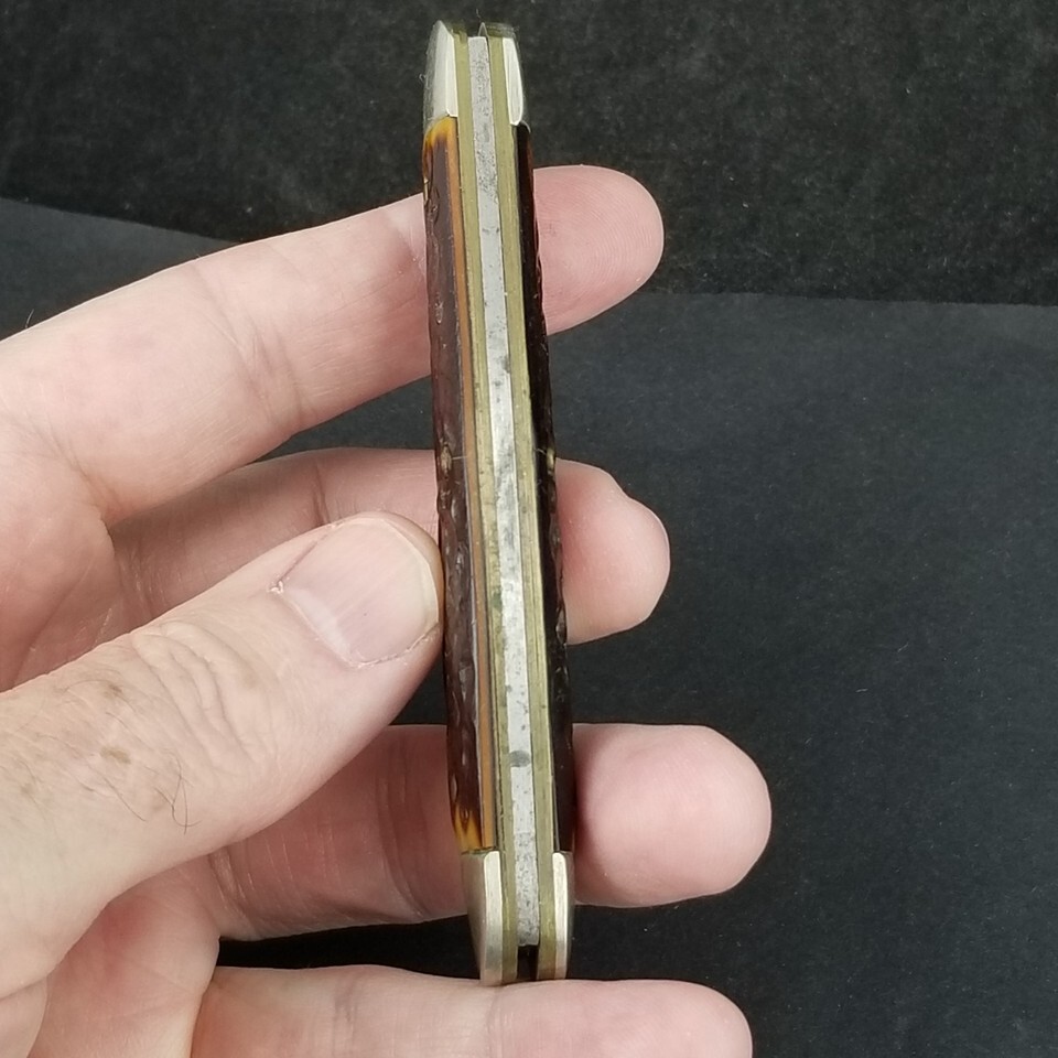 Scales are in great shape shape with no chips. Bolsters are in good shape with light signs of age. Both blades have good snap on full open and full close. Blades have some signs of age. Scales have some really really small pin edge cracks. SEE PICTURES.