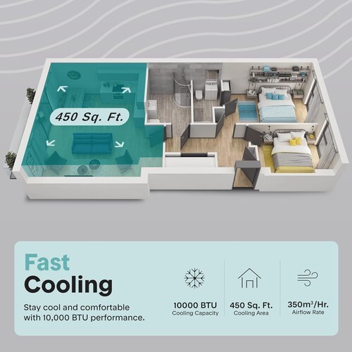 * FAST COOLING AIR CONDITIONER - This air conditioner with WiFi function has 10,000 BTU cooling power, covering up to 450 sq. ft. Perfect for rooms, offices, and apartments, this portable AC unit ensures quick cooling with a compact design