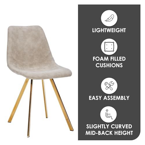 Product description: Enjoy supportive comfort and sophisticated style with the LeisureMod Markley Ergonomic Dining Chair. This chair seamlessly blends form and function, making it a perfect addition to your dining room, kitchen, or living area. The chair features an ergonomically designed, contoured seat and backrest that promotes healthy posture and provides exceptional comfort, whether you're enjoying a meal, working from home, or socializing with friends. The premium distressed leather upholstery not only adds a touch of elegance but also offers durability and easy maintenance. The double-stitched seams enhance the chair's strength and longevity. Supported by sturdy iron legs with a polished gold finish, this chair provides a stable and stylish base that resists rust and corrosion. Each leg is equipped with protective floor caps to prevent scratches and minimize noise on any surface. High-density foam padding ensures consistent comfort and support for extended periods. Assembly is quick and easy with the included tools and instructions, so you can start enjoying your new chair in no time. The LeisureMod Markley Ergonomic Dining Chair (MC18) supports up to 265 lbs and measures 19.7 inches wide, 22.8 inches deep, and 32.3 inches high, with a seat height of 19.3 inches. The chair weighs approximately 15.4 lbs. Its compact design makes it ideal for smaller spaces without sacrificing comfort or style. Add a touch of modern sophistication to your home with LeisureMod. We're committed to providing high-quality, stylish furniture that enhances your living space. Experience the LeisureMod difference and add the Markley Dining Chair to your cart today for the perfect blend of comfort and design.