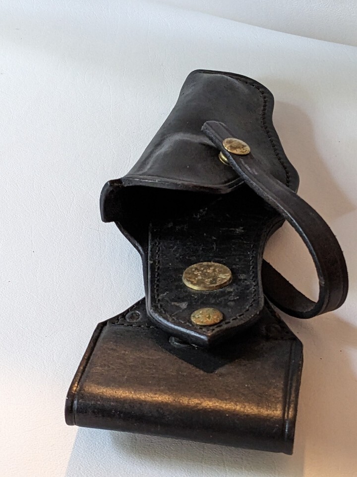 Up for sale is a used Bucheimer BTA-14M RH Holster Black Leather with Gun Strap and Belt Loop