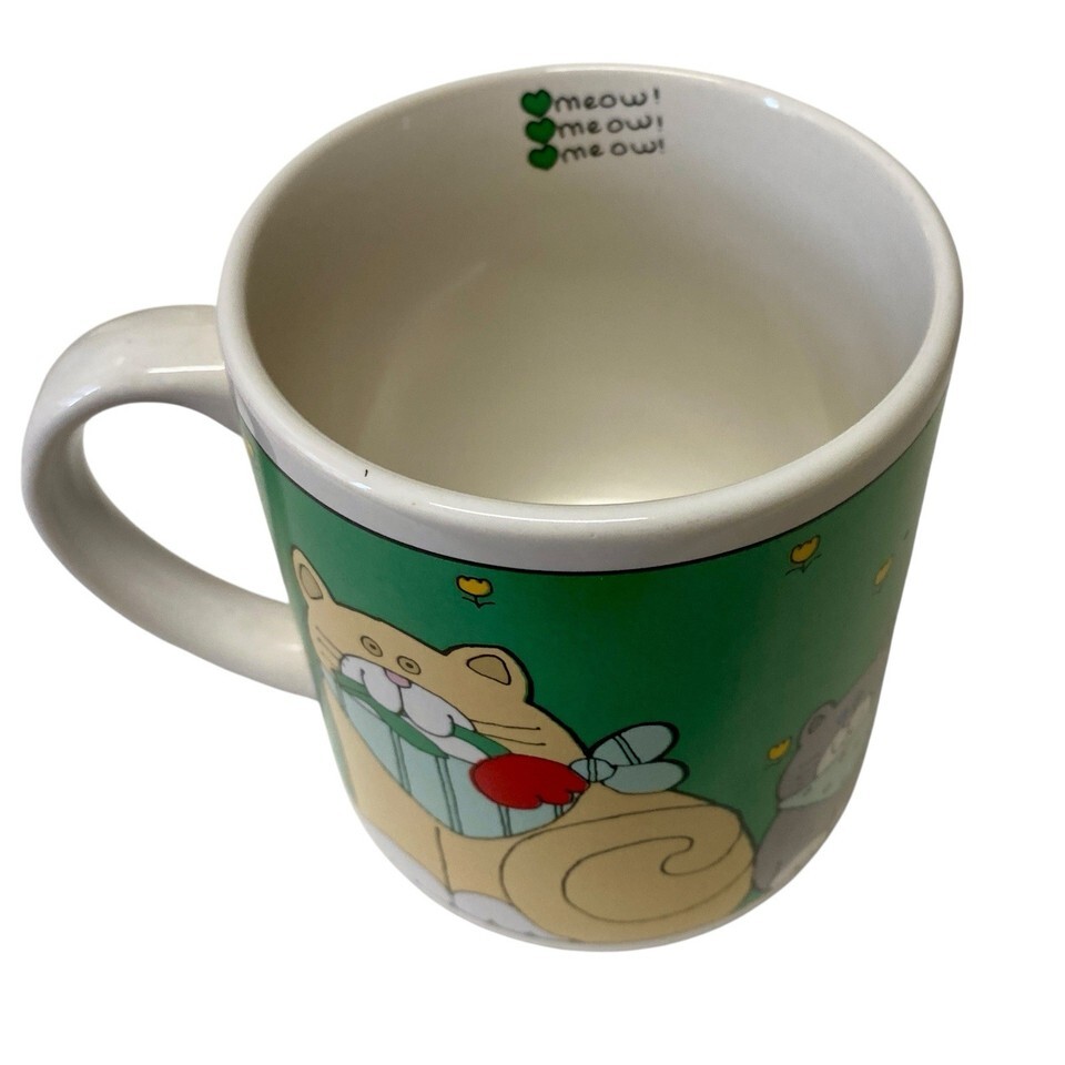 Cats Meow Mug Green Stoneware NOS Vintage 1986 Korea Tulips Coffee Cup