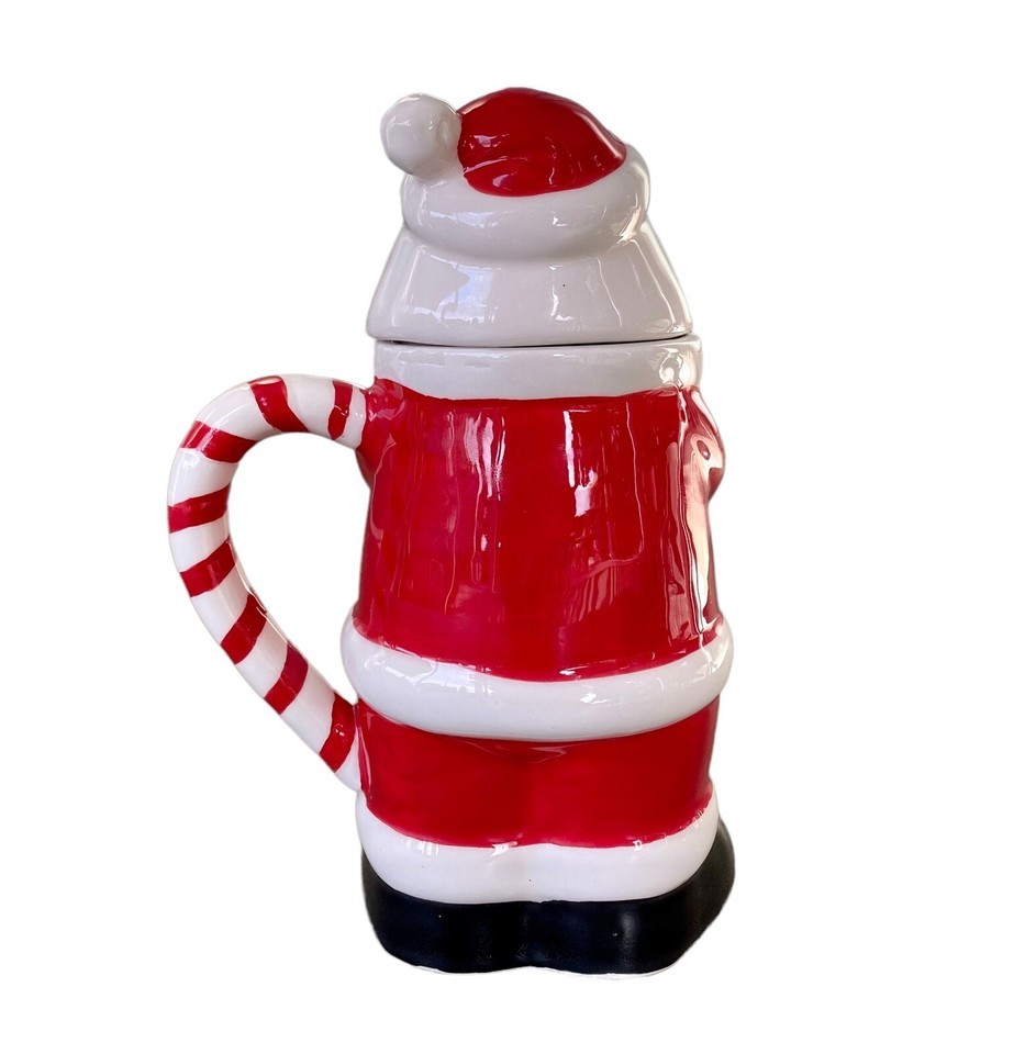 Pfaltzgraff Candy Cane Santa Mug w Lid