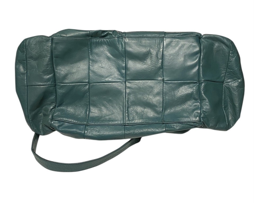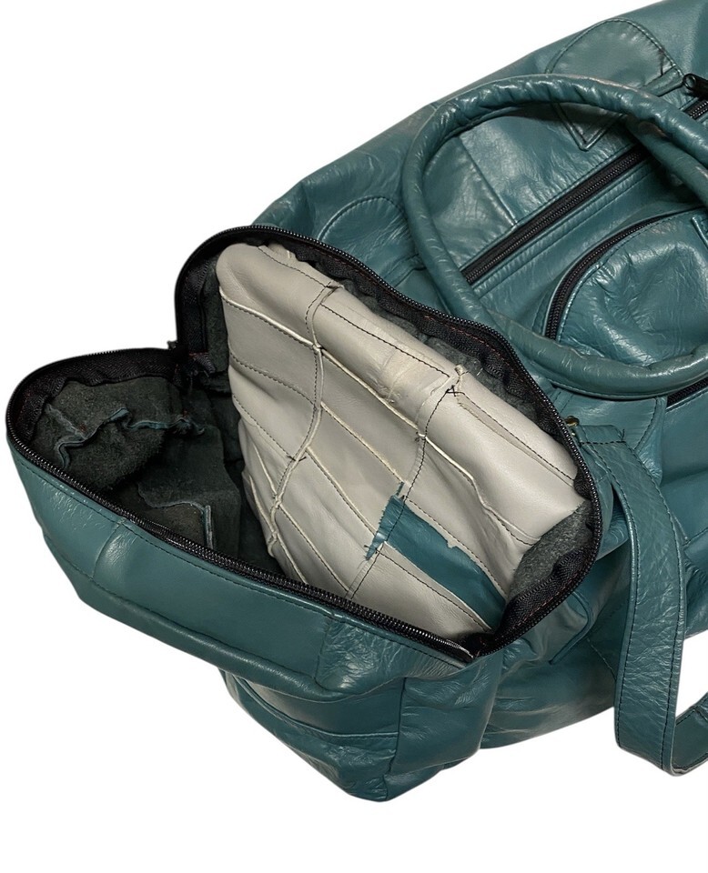 Leather Duffel Bag Teal Green Travel Carry On Weekend Vintage Shoulder Strap