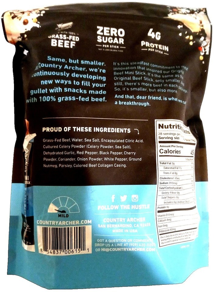 Country Archer Grass-Fed Beef Sticks Minis Original 28 Sticks EXP 02/2026