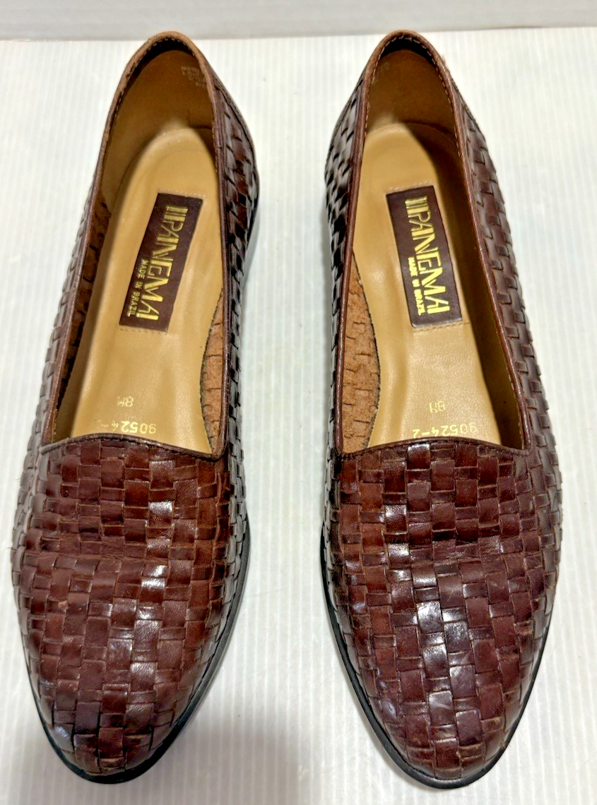 Ipanema Brazil Leather Woven Loafer 8M Vintage Brown Slip On Shoe