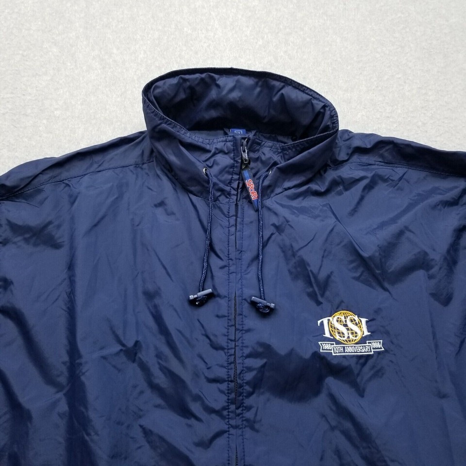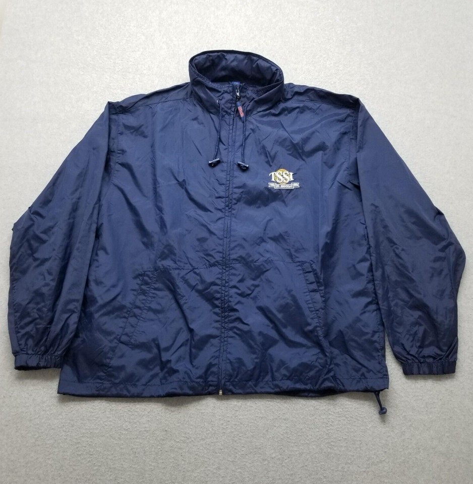 Dunbrooke Rain Jacket Mens XL Blue Full Zip Pockets Nylon Windbreaker Hoodie