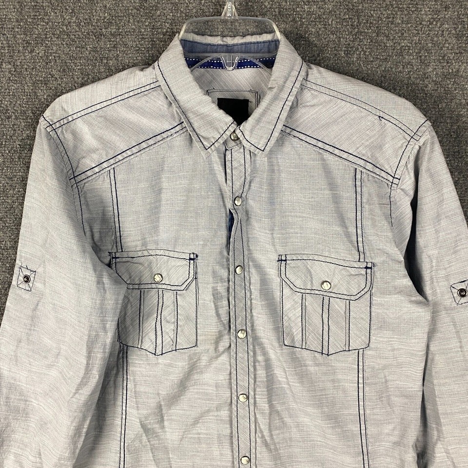 Various Artists Pearl Snap Shirt Men's Medium Long Sleeve Gray Cotton Blend M
