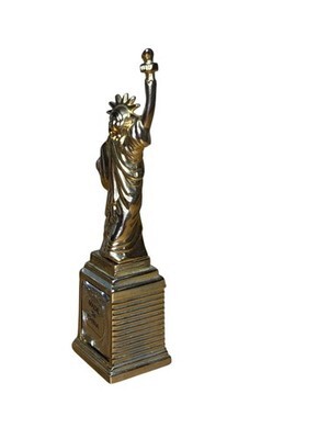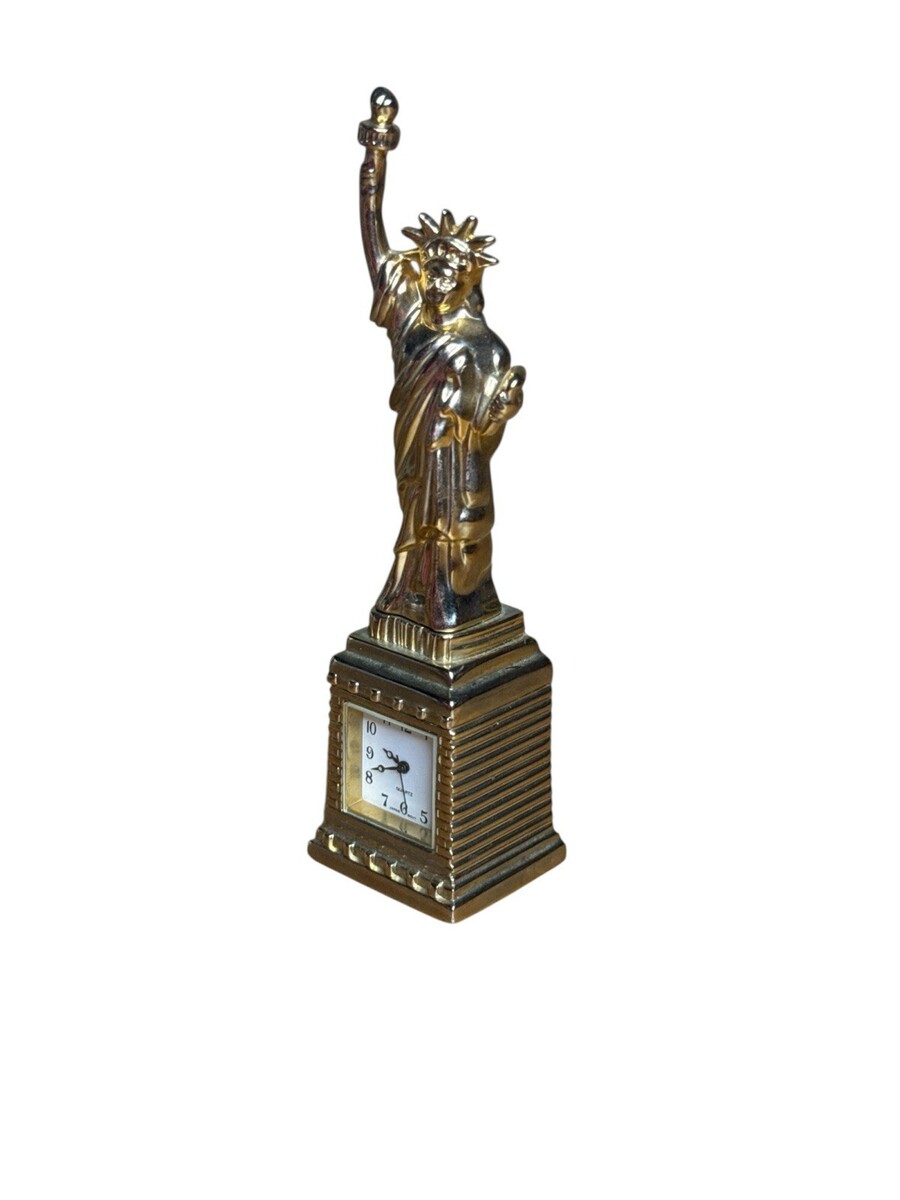 Vintage Minghua Small Metal Statue Of Liberty Desk Clock Miniature Gold Tone