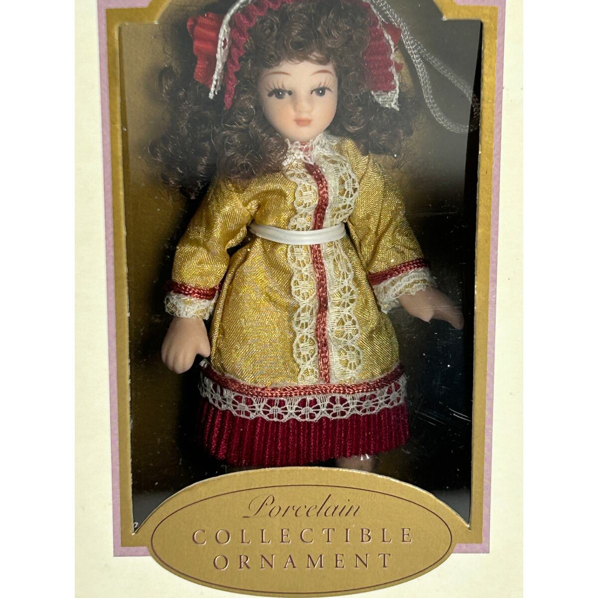 Pretty Woman Porcelain Doll Ornament Purple Red Trim Dress Blonde Curls 2004