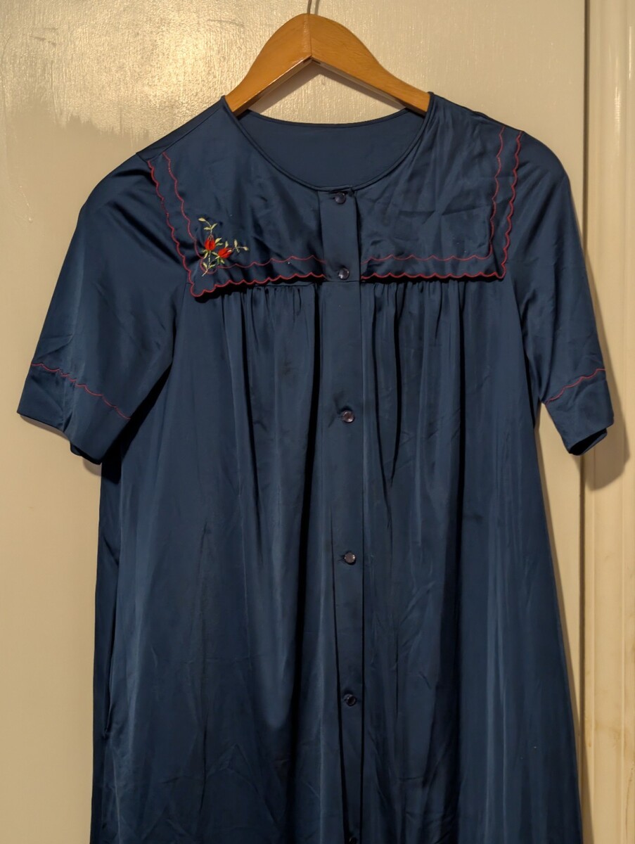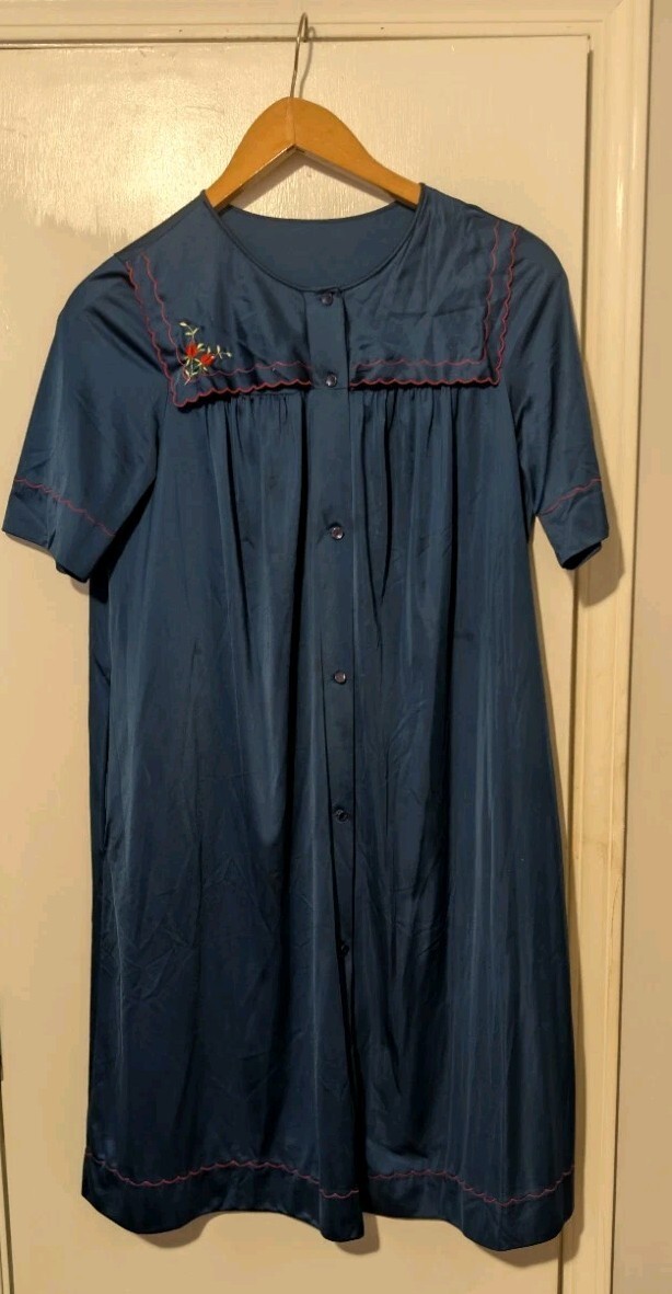Vintage Shadowline Blue 3 Piece Set Robe Top & Bottoms Size 34 Small Embroidery