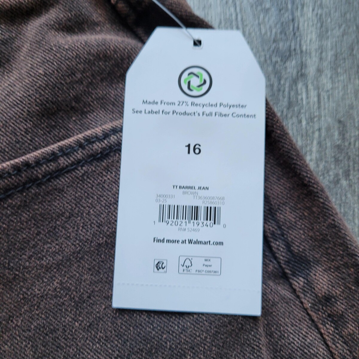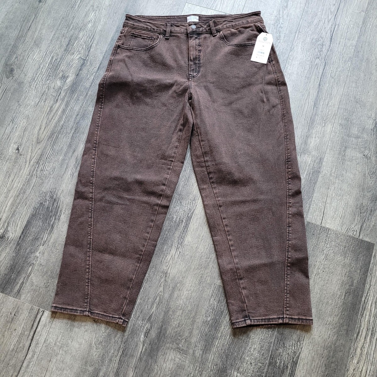 New NWT Time and Tru Women's High Rise Brown Barrel Jeans 26.5" Inseam Sz 16