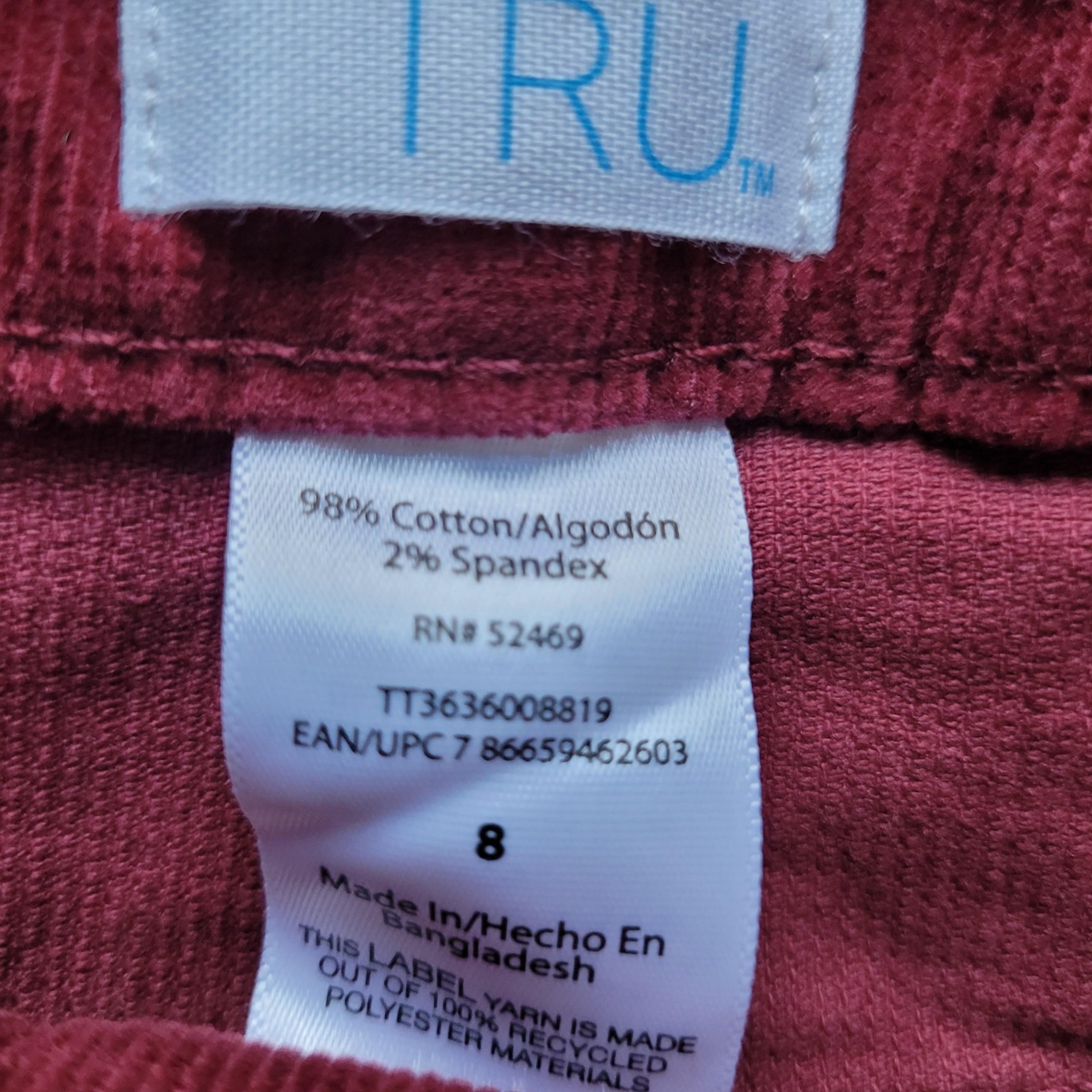 New NWT Time and Tru Women's Denim Wine Burgundy Corduroy Pocketed Skirt Size 8