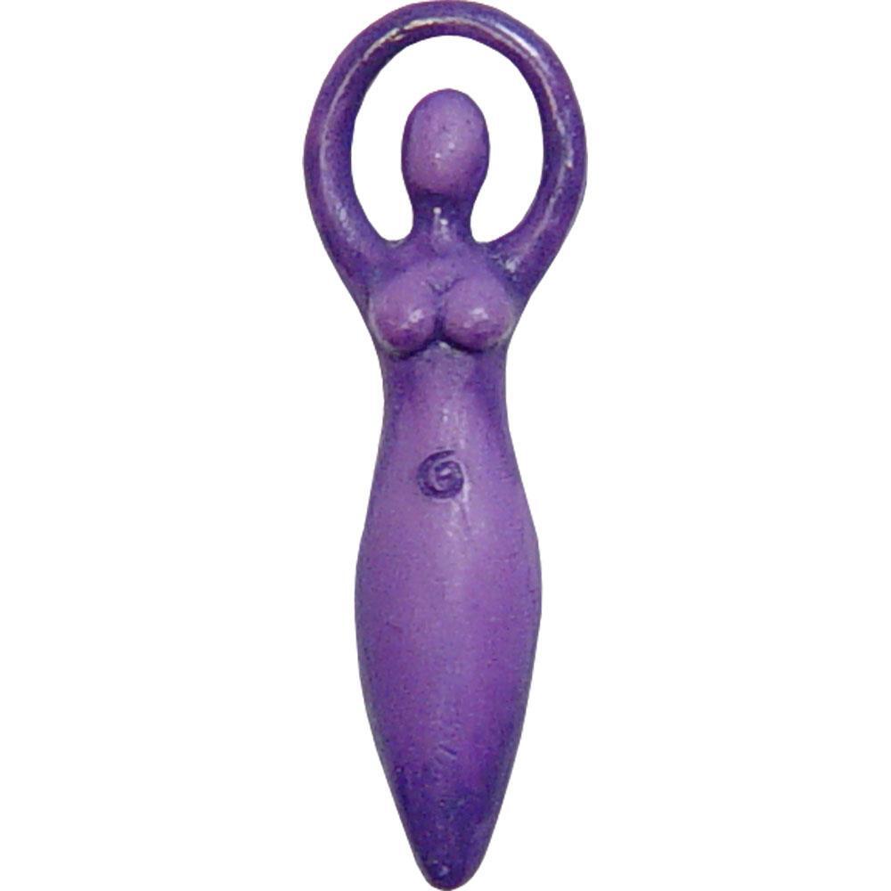 A talisman enhances and empowers our thoughts, rituals and spells. This mini goddess talisman is perfect for discreet work or use on a small altar as well as a pocket totem. Measuring approximately 1.25 inches x .5 inch, the purple painted gypsum goddess amulet includes a story card.