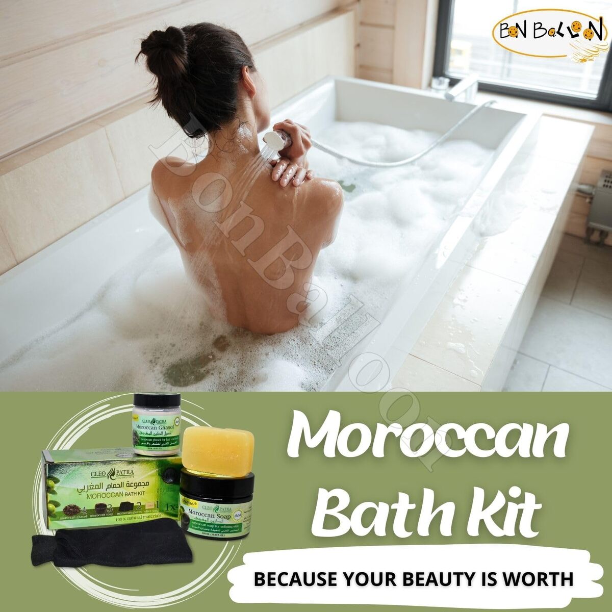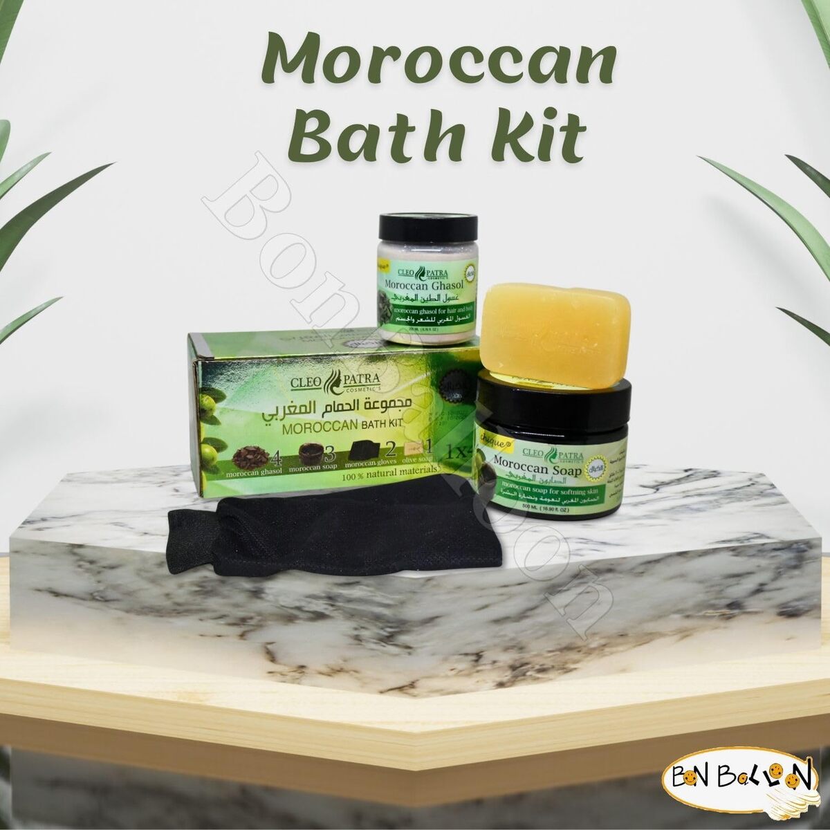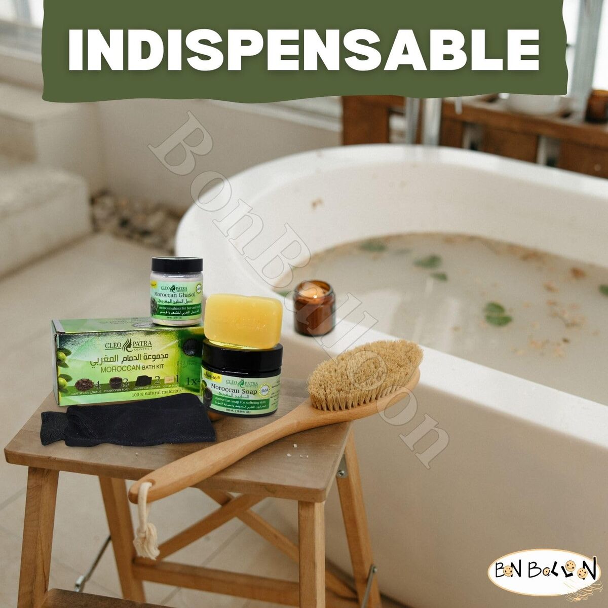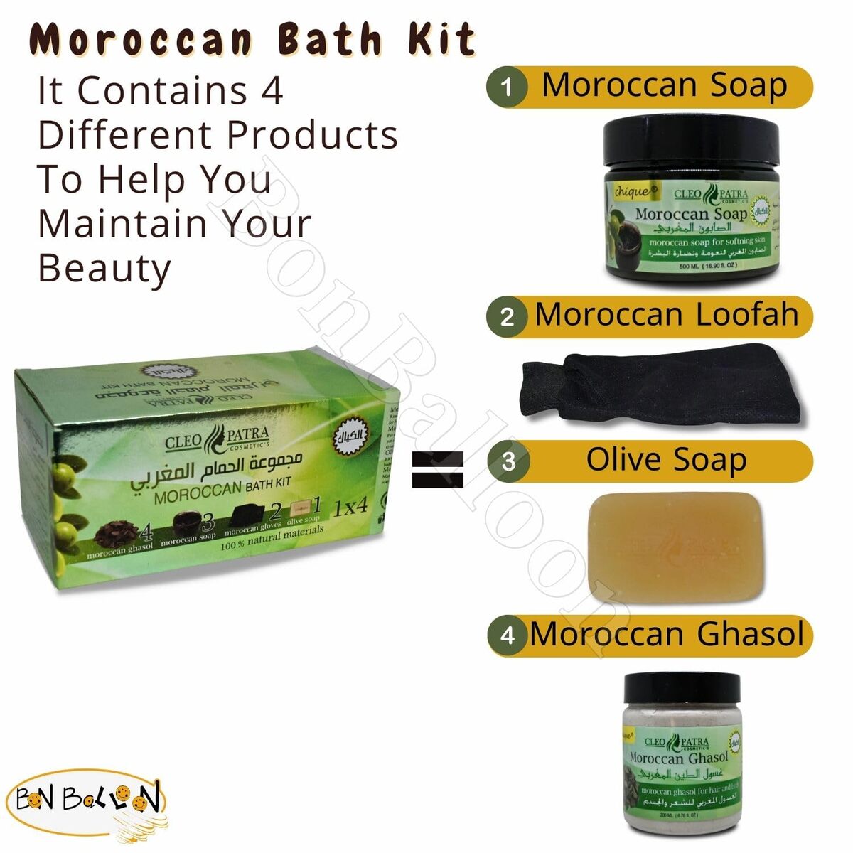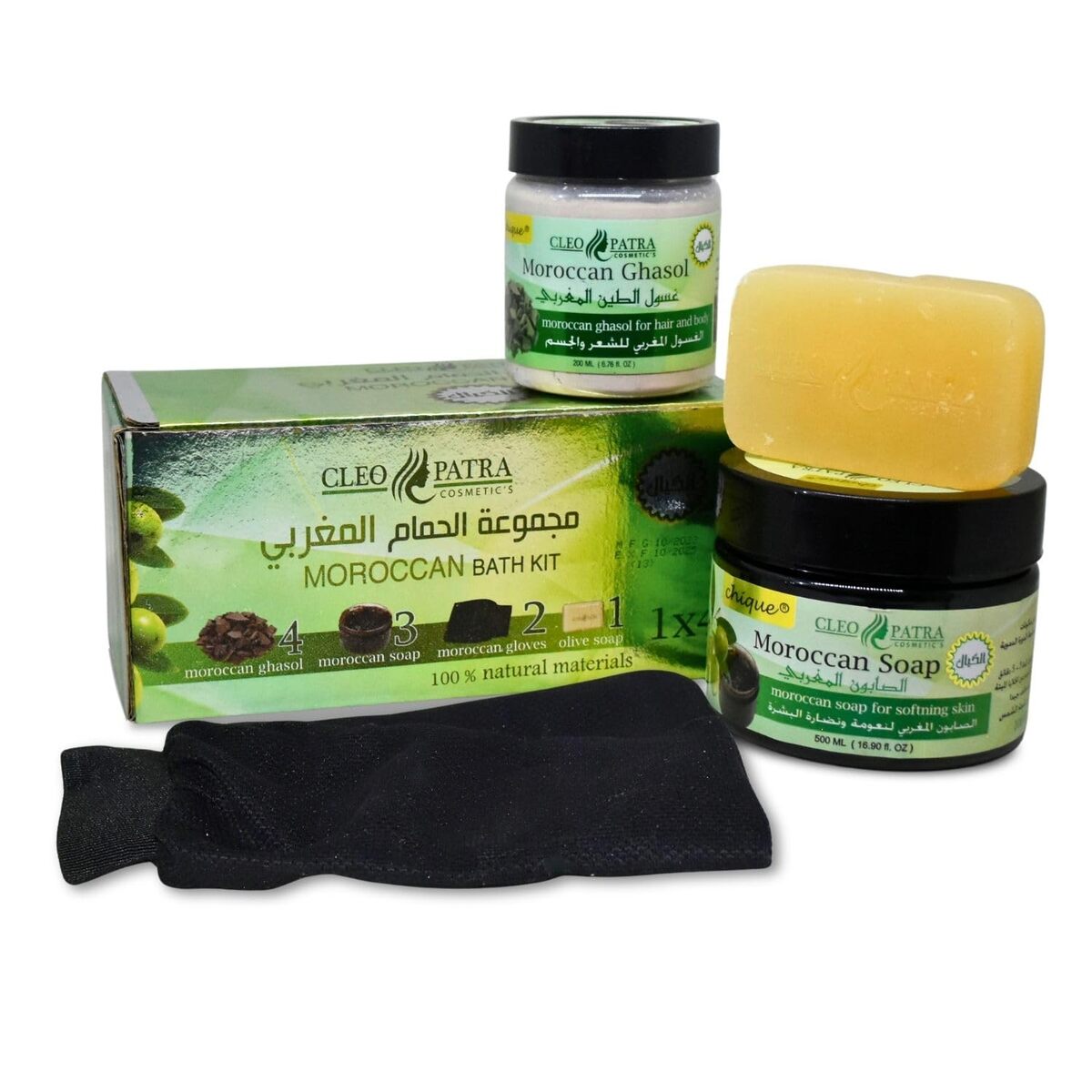 ? Egyptian Bath Kit ( 4 X 1 ) : ? 1- Olive Soap : Wash The Body With It After Using Moroccan Soap To Give The Body An Attractive And Wonderful Scent ? 2- Egyptian Gloves : Apply On The Body And Face With Moroccan Soap After Rinsing It With Warm Water