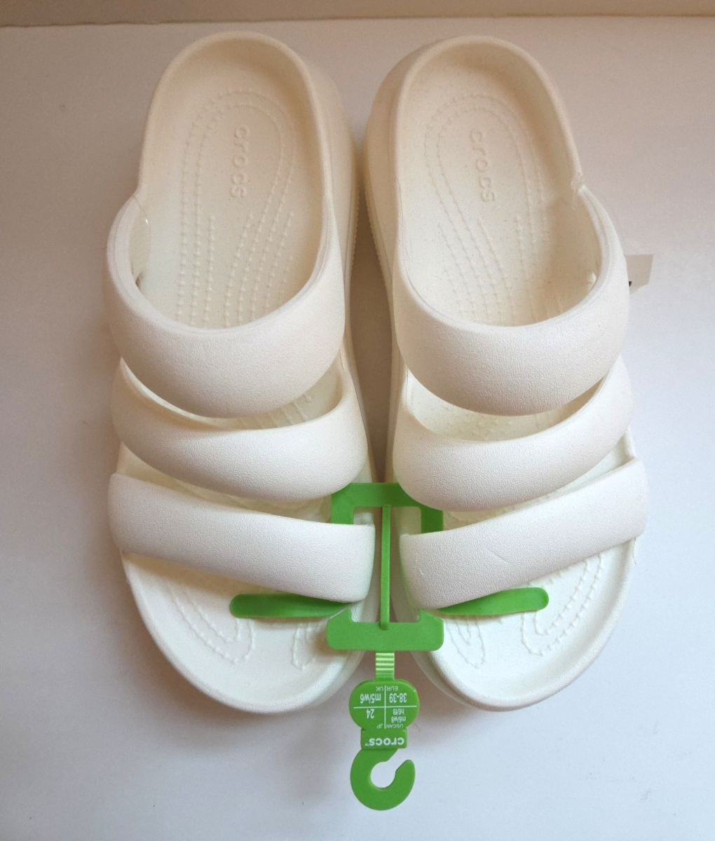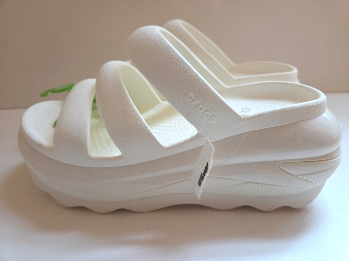 CROCS Mega Crush Platform Triple Strap Slides Sandals Chalk White Women Sz 8 New