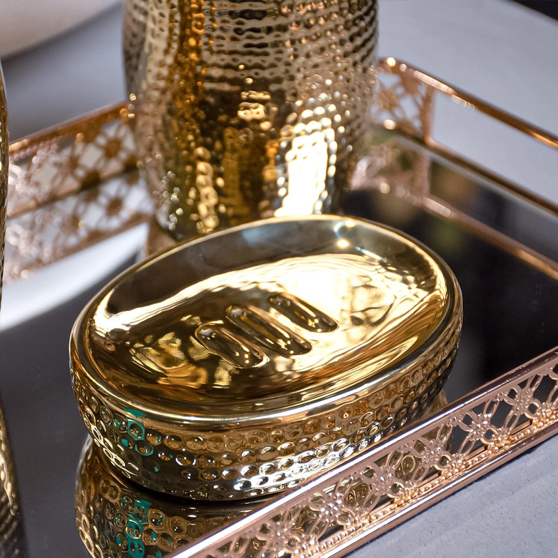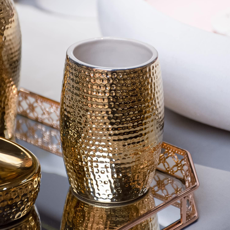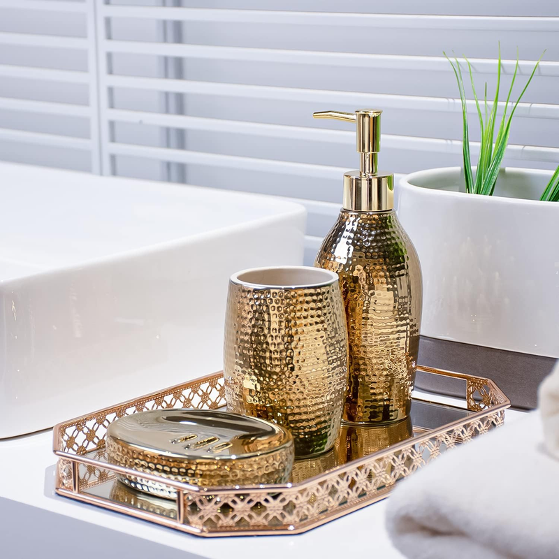Gold Bathroom Accessory Set - 3 Piece Decorative Ceramic Bathroom Accessories S