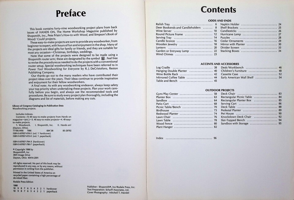 A fantastic guide for woodworkers of all levels, this book explains how to construct a variety of wooden items. It features 49 easy-to-make project plans sourced from HANDS ON Magazine, perfect for creating gifts or home decor. Projects range from bird feeders and toy trains to tables and deck chairs. This specific copy features clean, unmarked pages, making it a great resource for hobbyists and craftspeople.