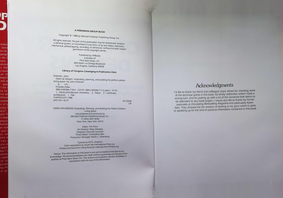 This is a 1988 copy of 'Open Air Designs' by John Driemen, a comprehensive guide to evaluating, planning, and building the perfect outdoor living space. The book covers key topics such as decks, patios, and landscape architecture, making it an excellent resource for DIY enthusiasts, homeowners, and design students. This specific copy is in good condition, featuring clean and unmarked interior pages. A great find for those interested in practical home improvement or retro 1980s design aesthetics.