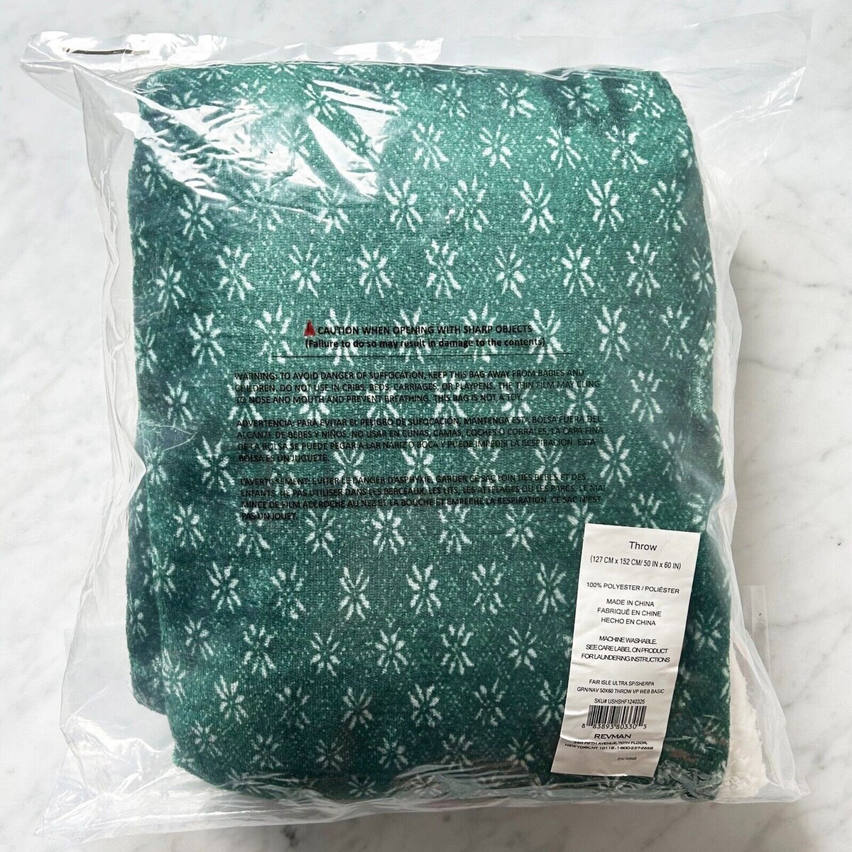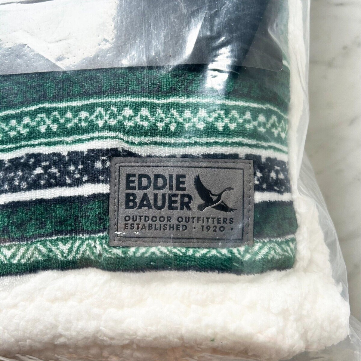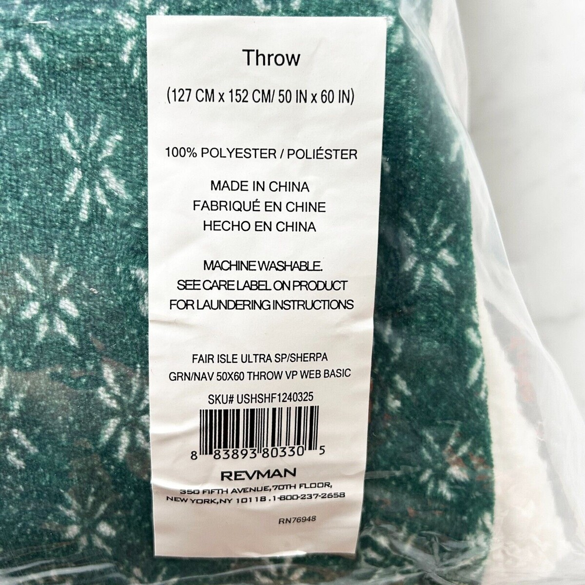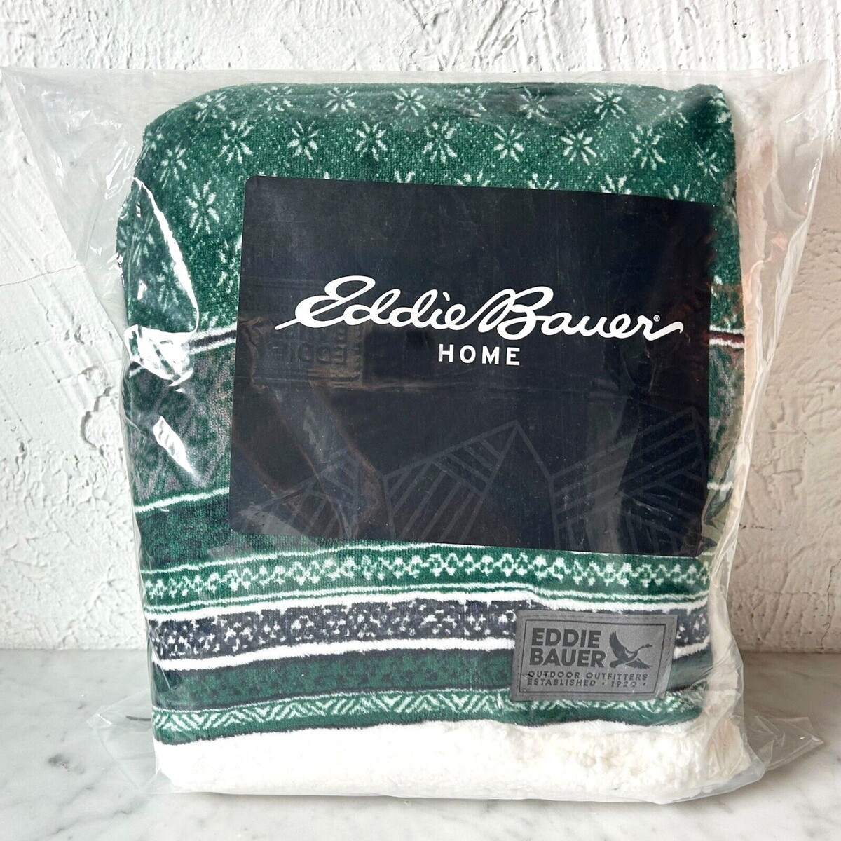 Eddie Bauer Nordic Fair Isle Sherpa Throw - Green/Navy Fleece Blanket Reversible