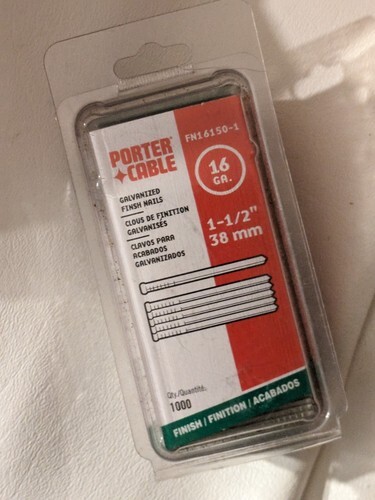 This Porter Cable 16-gauge nail gun nails set is a must-have for any professional or DIY enthusiast. The set includes 1000 galvanized finish nails with a head diameter of 0.0625 inches and a length of 1.5 inches. These nails are made of high-quality steel and are designed to work with the Porter FN 16150-1 model. The nails are manufactured in China and come in a sturdy box that keeps them organized and easy to access. They are perfect for a variety of fastening applications, including woodworking, construction, and more. Whether you're a seasoned professional or just starting out, these nails will provide you with the reliability and performance you need to get the job done right.