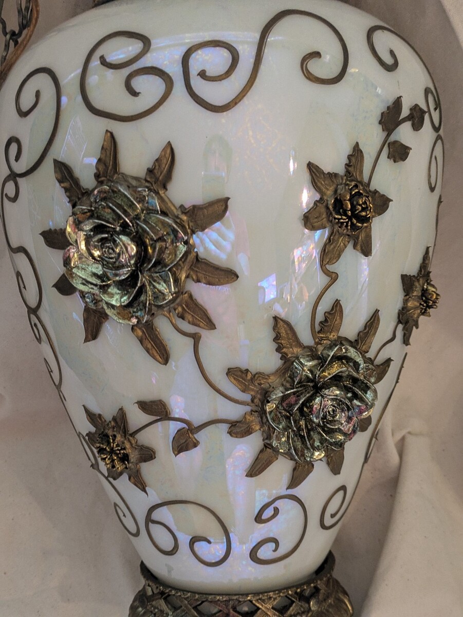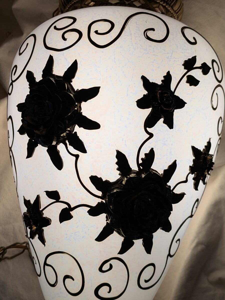 Victorien Bristol Verre Main Peint Nuance 12 IN Floral Motif Lampe Travail