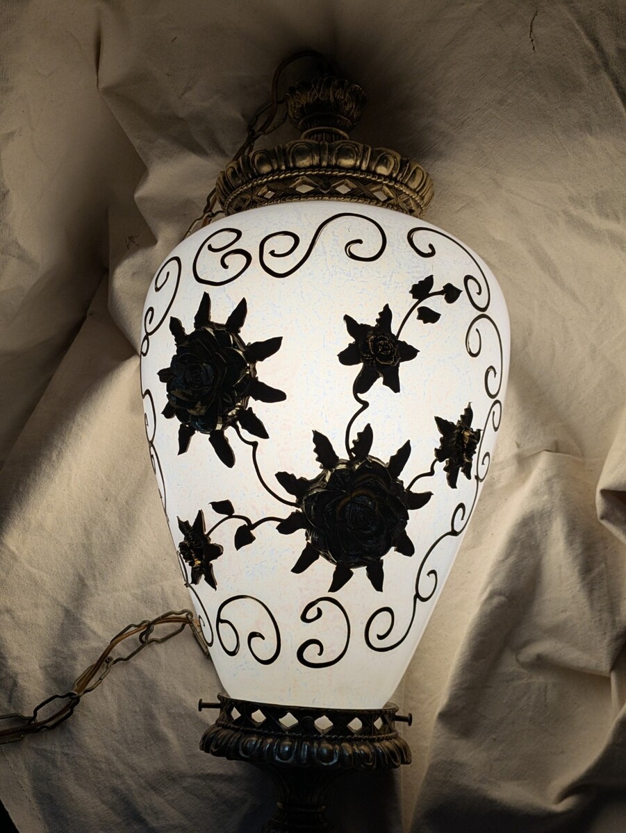 Cornell Hollywood Régence Doré Décoré Lait Verre Suspendu Swag Lampe