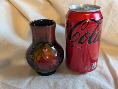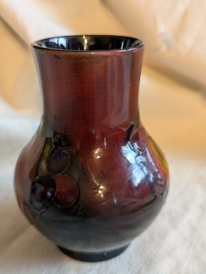 1940 W Moorcroft Leaf Berry Flambe Glaze Vase HM Queen Impressed 4 In Tall