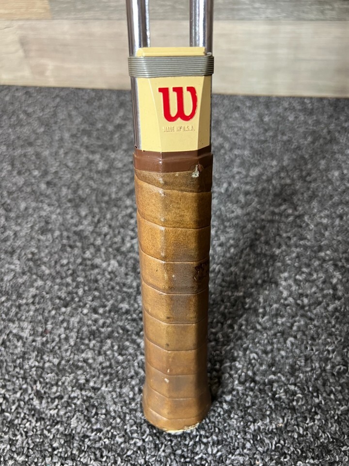 The item for sale is a vintage Wilson T3000 Tennis Racket Light 4-3/8 Neuman Calf Grip w/ Cover. Made in USA. In very nice condition with minor age-related wear.