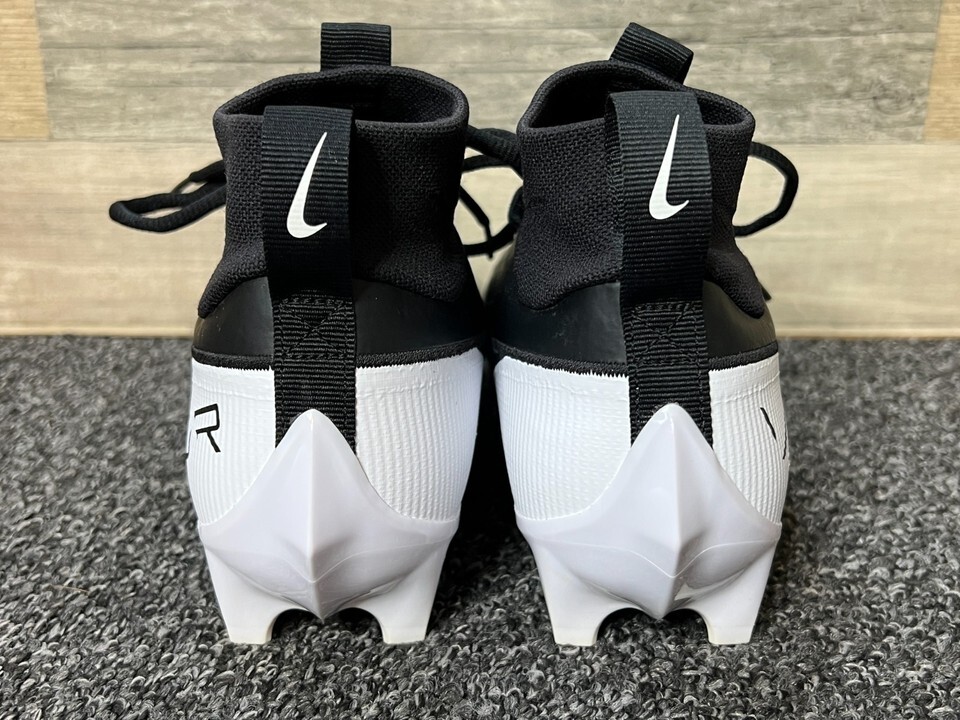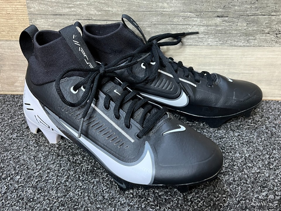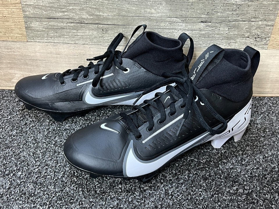 The item for sale is a pre-owned Nike Vapor Edge 360 2 Black White Football Cleat DA5456-001 Men's Size 8. Only worn one time. Bought a half size larger because the correct size was out of stock, and they ended up being too big. Couldn't return after wearing them. In excellent condition.