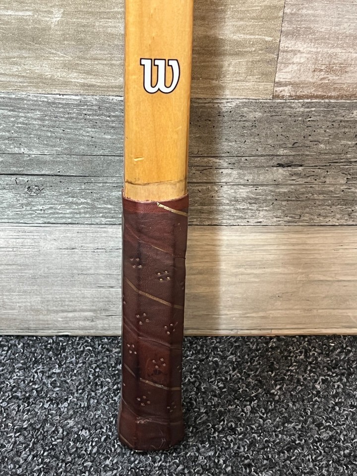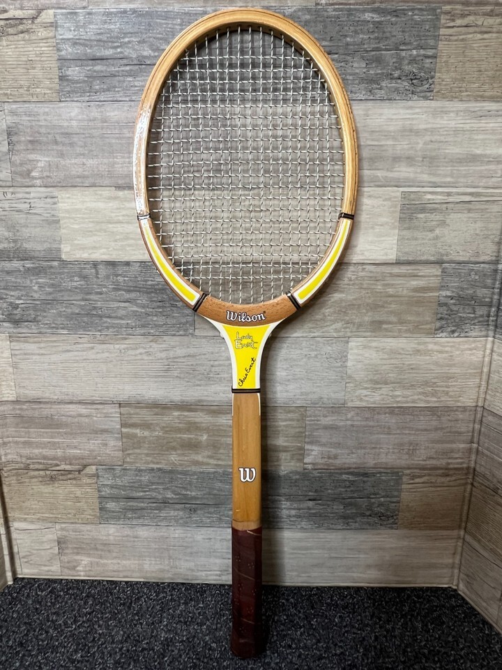 The item for sale is a vintage Wilson Chris Evert Lady Evert Tennis Racket Signature Series. In good used condition with minor age-related wear.