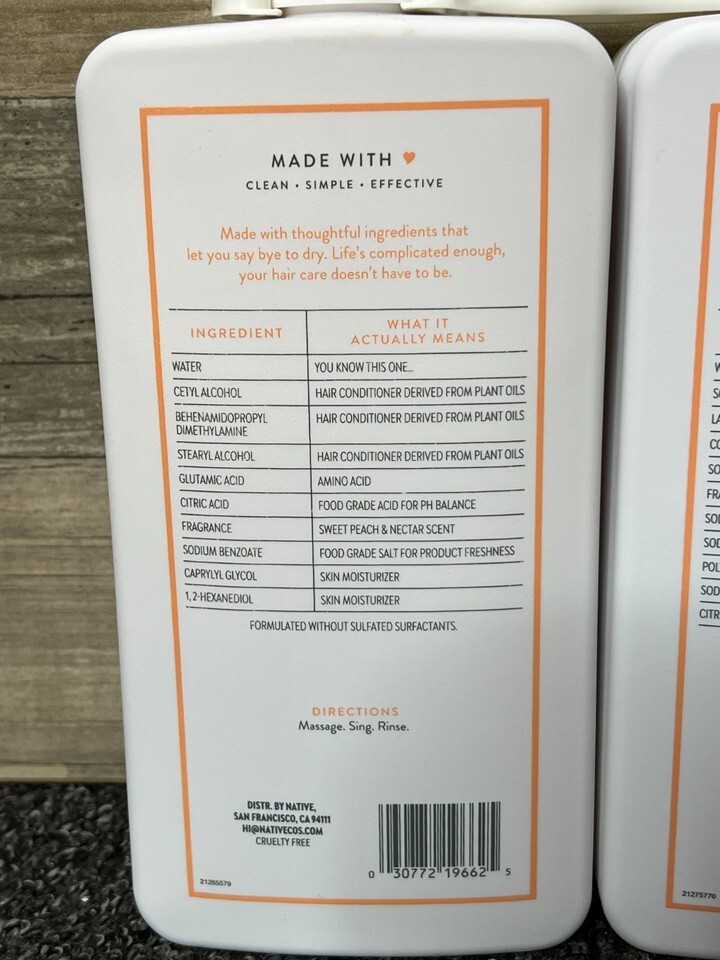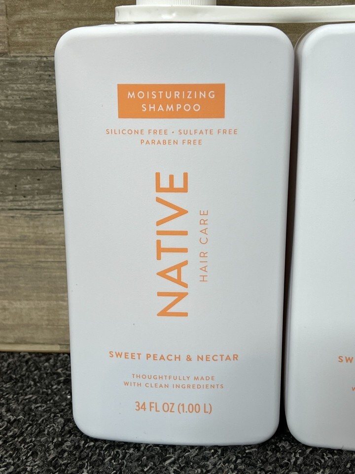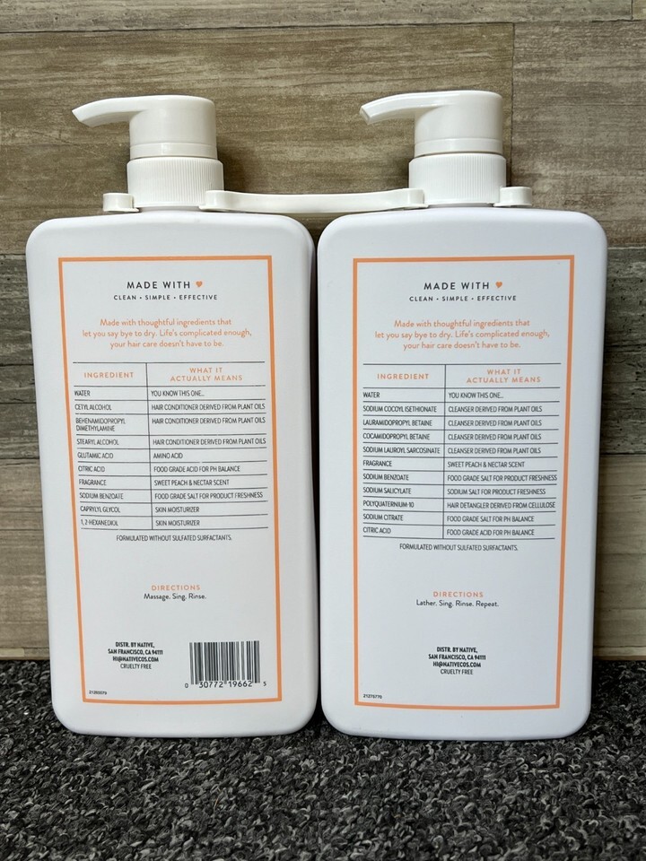The item for sale is a brand new 2-Pack of Native Sweet Peach Nectar Shampoo Conditioner 34 Fluid Ounce. Factory sealed.
