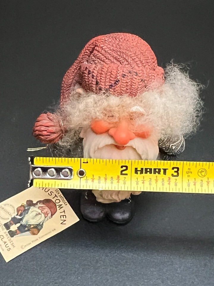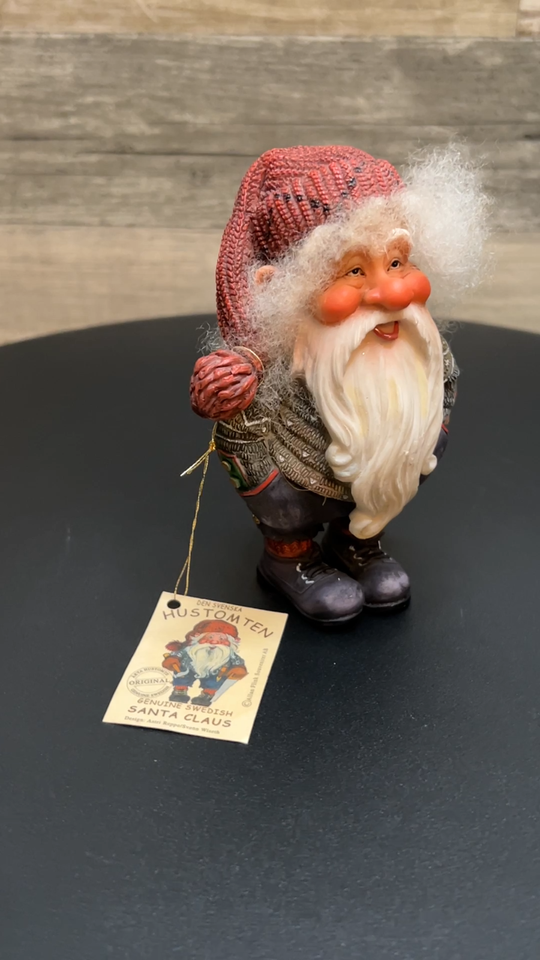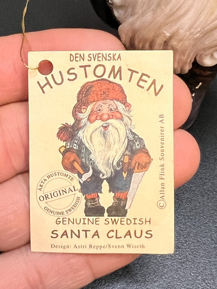 The item for sale is a pre-owned Allan Fink Den Scenska Hustomten Swedish Santa Claus with his hands in his pockets Elf Troll Figurine. In excellent condition with original string tag.