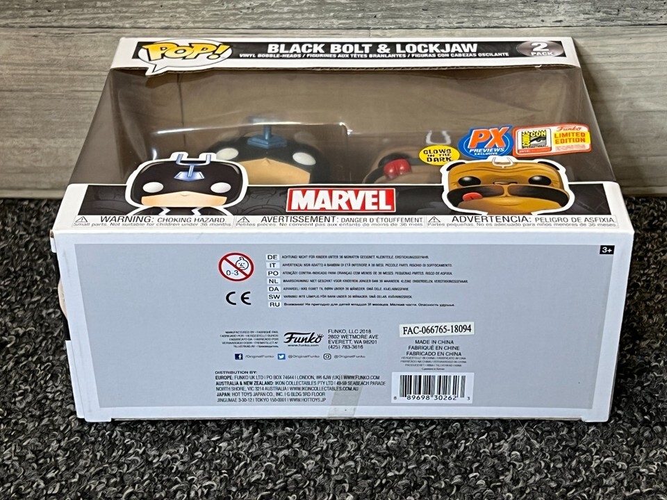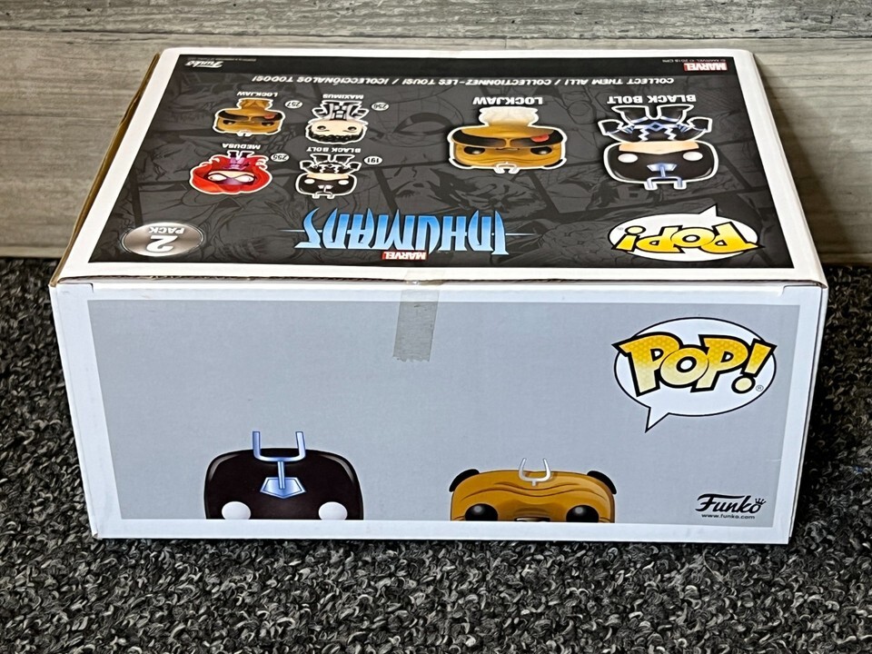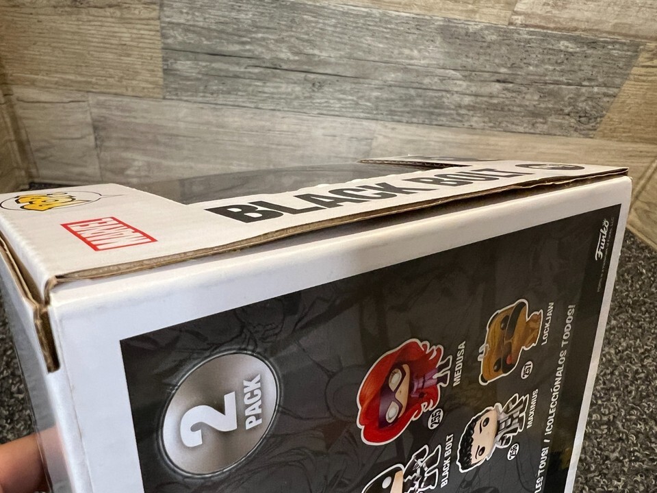 The item for sale is a brand new Funko POP! Marvel Marvel Teleporting Lockjaw Black Bolt Two-Pack Exclusive. Factory sealed. There's a small amount of separation on one side of the box where it was glued together from the factory. Almost as if there wasn't enough glue applied to completely seal the box. See last picture.