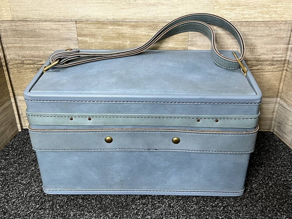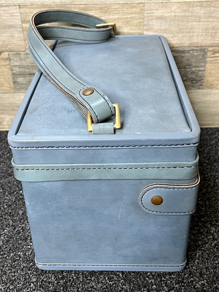 Hartmann Luggage Train Case Blue Vinyl Faux Leather Suitcase MCM (No Key)