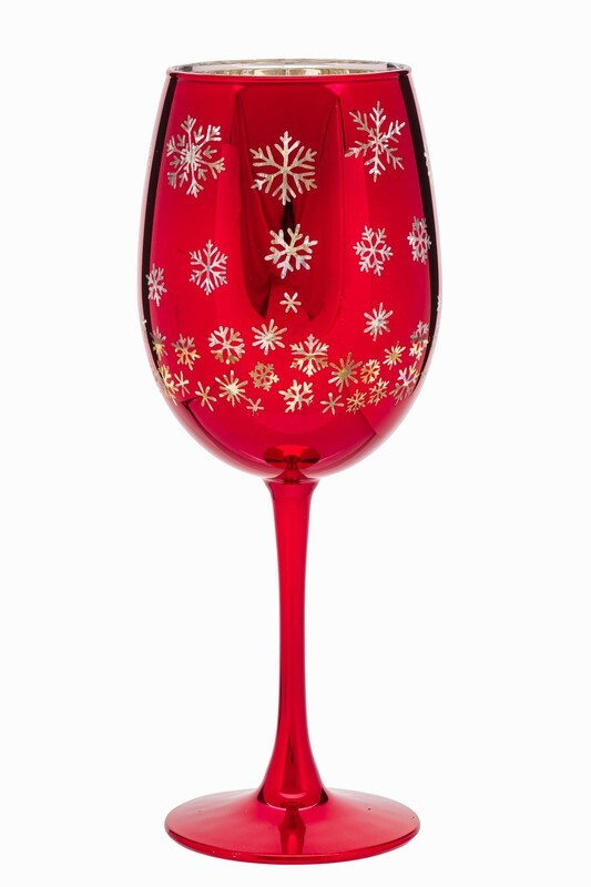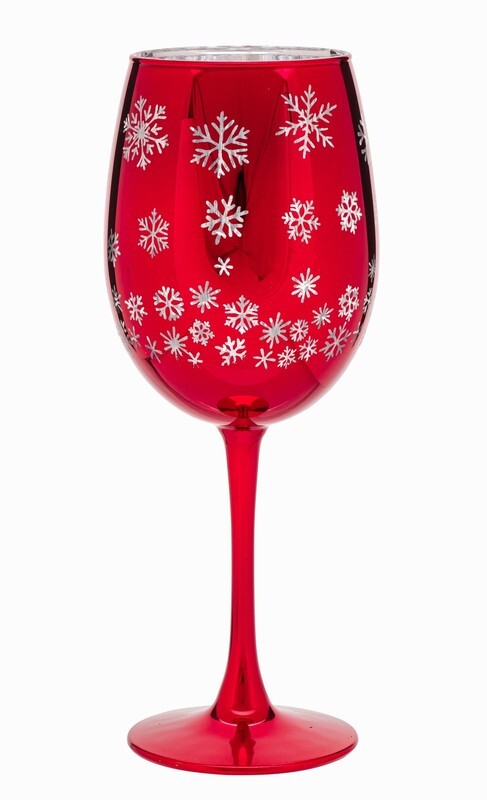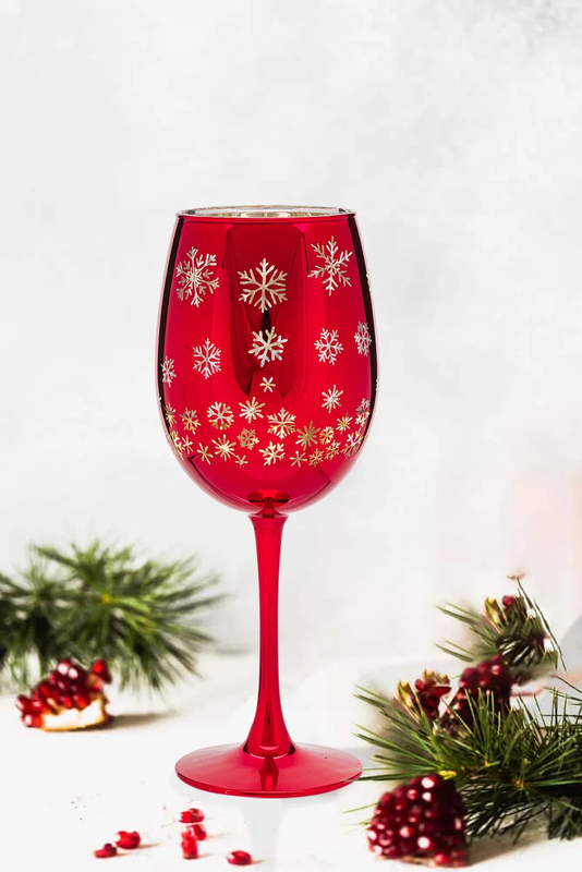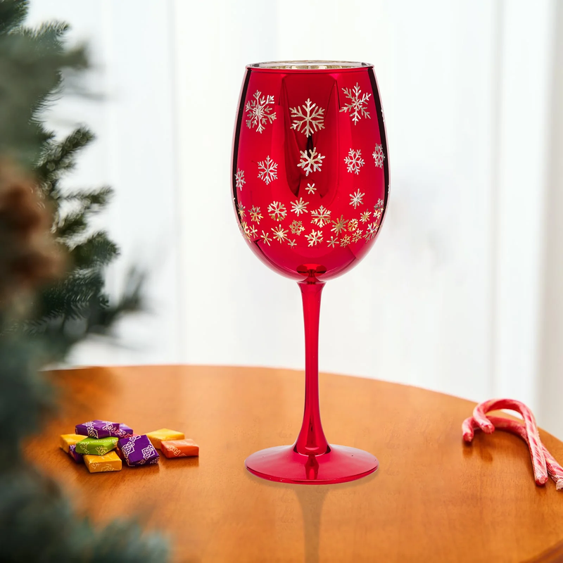 Classic Red Wine Glass Shape. Shinny holidy red color. Two Tone Snowflake pattern.