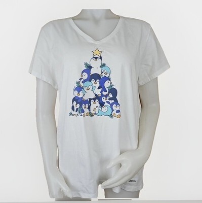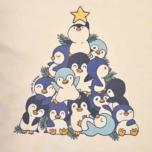 Life is Good Christmas Shirt Crusher T Womens L Penguin Tree White Short Sleeve