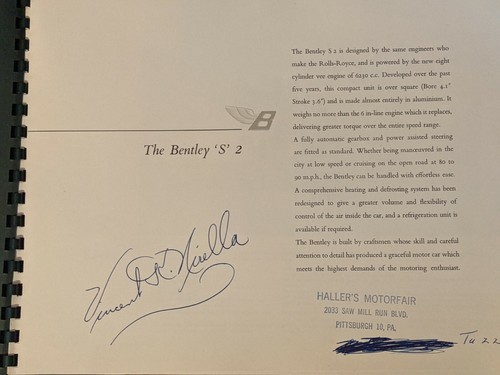 Up for sale is a 1959 1962 Bentley Motors S S2 Dealer Sales Brochure with Green Cover from Haller's Motorfair in Pittsburgh PA.