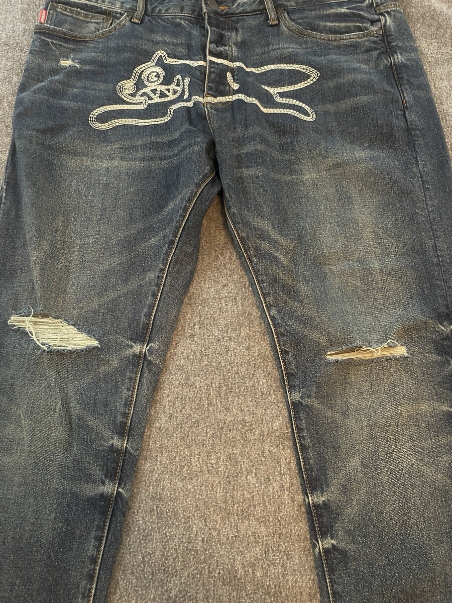 Icecream Jeans Mens 38x32 Blue Denim Cotton Stretch Distressed Dog Running