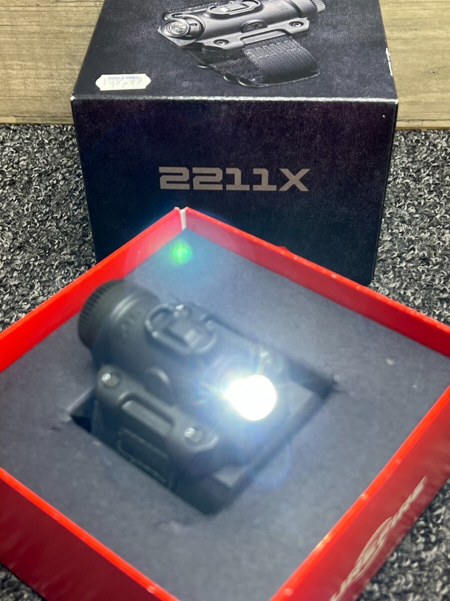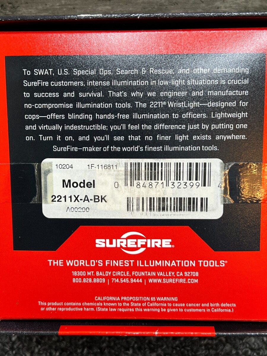 The item for sale is a brand new, open box SureFire 2211X-A-BK Variable Output 123A Powered LED WristLight. We recently bought a lot of new inventory from a gun store that was going out of business. Be sure to check our other listings for gun parts and accessories.