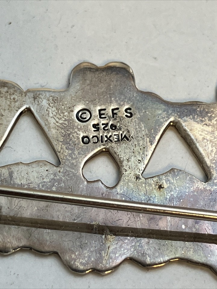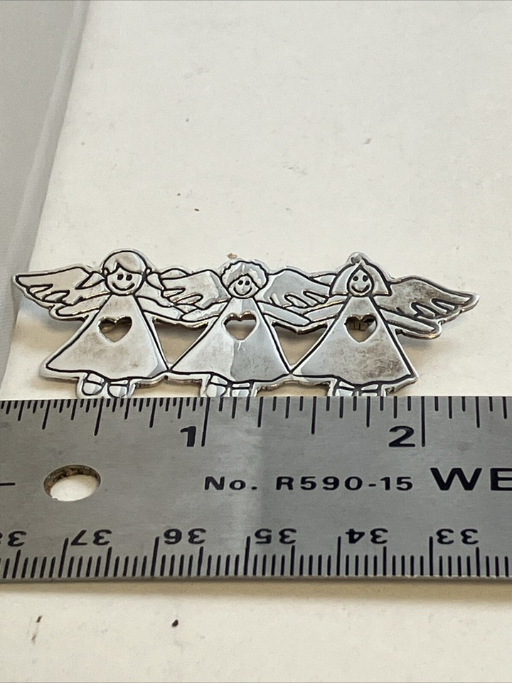 Sterling Silver 925 EFS Guardian Angels Brooch Pin Mexico 2.25” Long