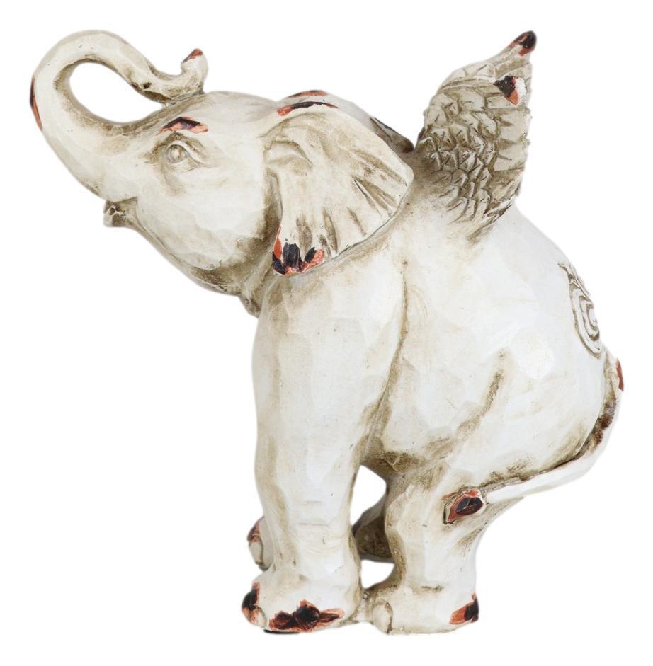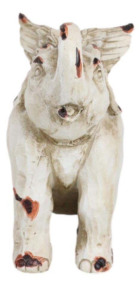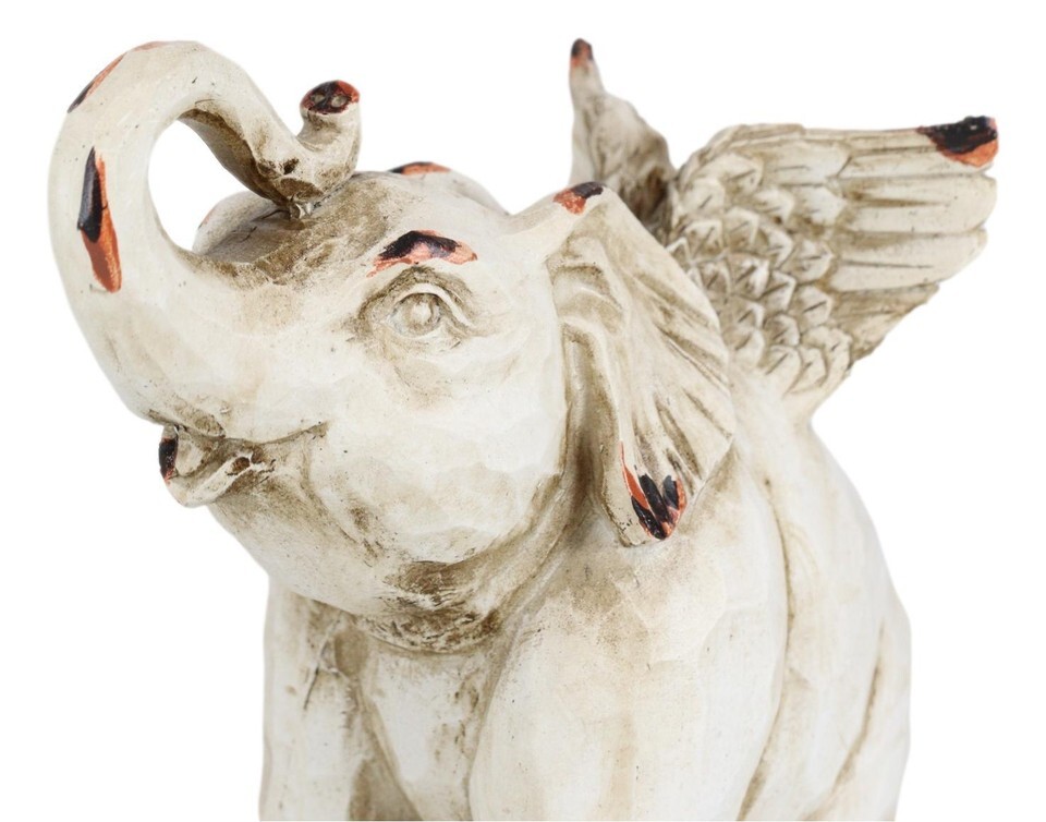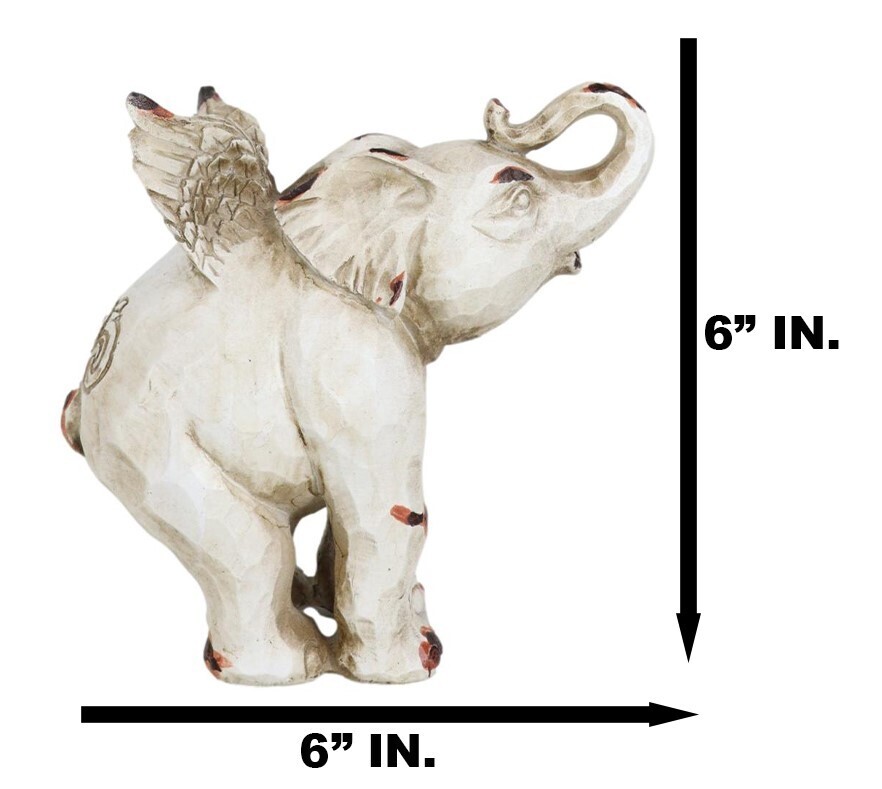 Whimsical Angel Winged Elephant With Trunk Up Faux Wood Carving Resin Figurine