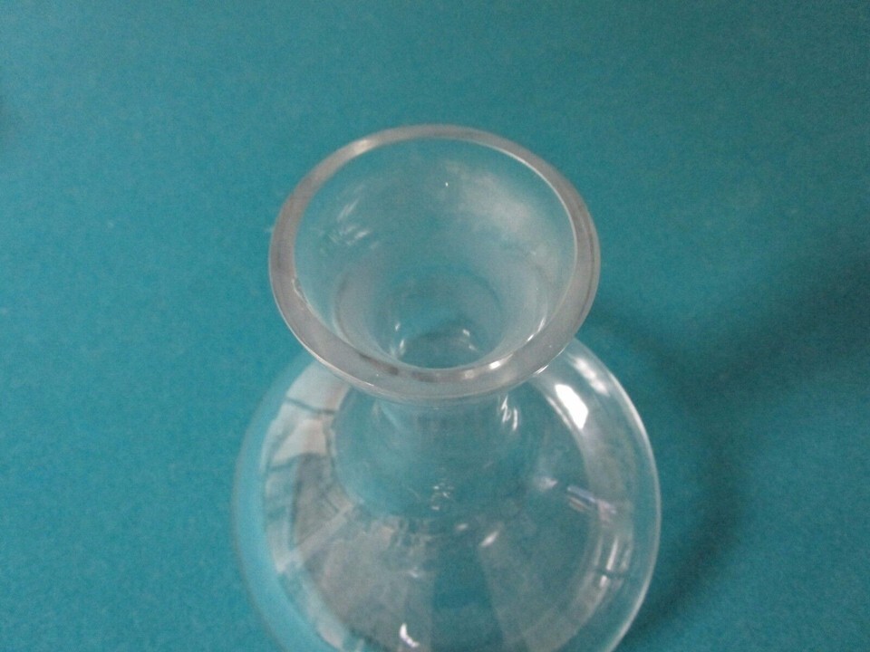 VINTAGE GLASS SHIP DECANTER [*GL5] 9 1/2" T X 7" DIAM, VERY GOOD CONDITION, SOME LIGHT SURFACE SCRATCHES COMMENSURATE WITH AGE