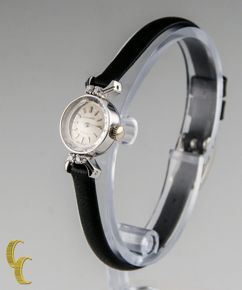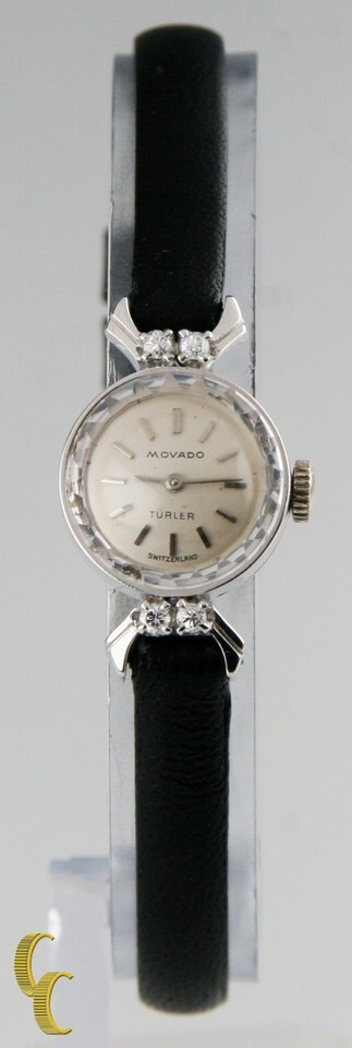 Women's Vintage 18k White Gold Movado Turler Watch W/Diamonds