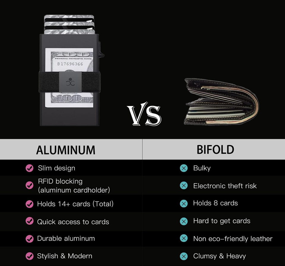 Black Slim Aluminum RFID Wallet for Men, Pop-up Card Holder & Cash Clip