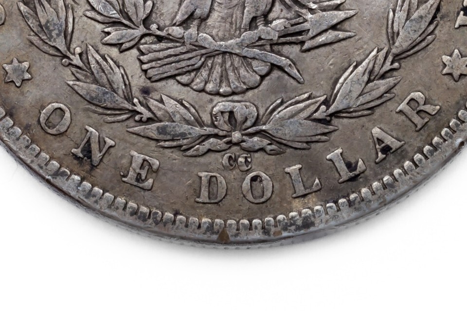 1889-CC $1 Silver Morgan Dollar in Fine Condition, VF in Wear, Rim Damage