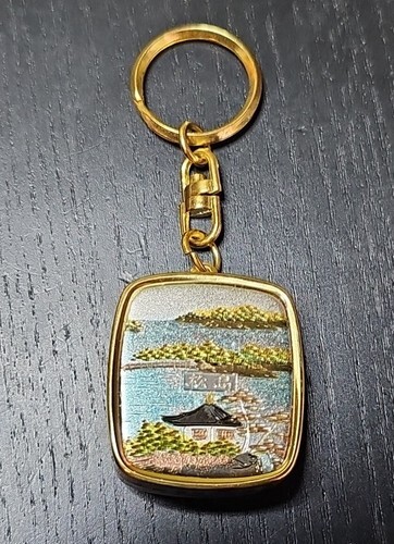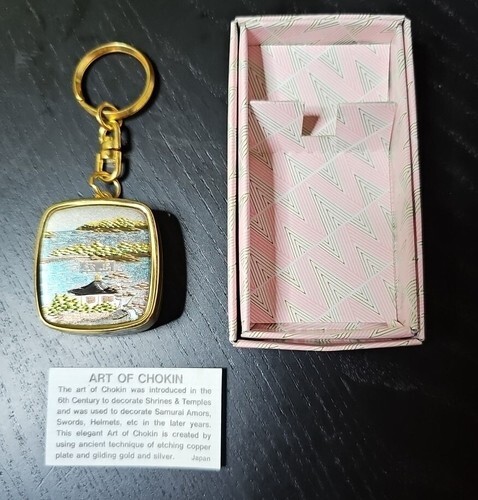Art of Chokin Matsushima Bay Zen Temple Music Box Keychain Works Swan/Sankyo A