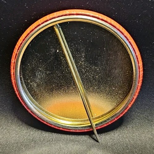 Vintage LET'S GET ACQUAINTED! Regalia MFG. CO. Pin Back 2" Red Orange Pigs
