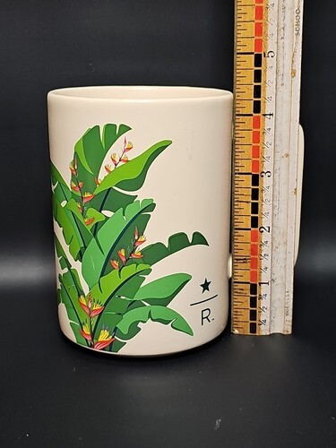 Starbucks Reserve 2020 Coffee Tea Mug Banana Leaf Tan Beige Green Jungle 12ozLike New Condition. Rare beige coffee tea mug cup with green banana leaves and red and yellow heliconia flowers. Collectible Starbucks